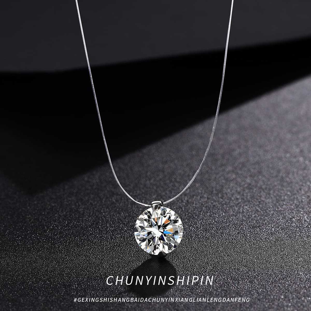 s925纯银人鱼之泪小钻鱼线项链气质饰品百搭隐形锁骨链时尚配饰女