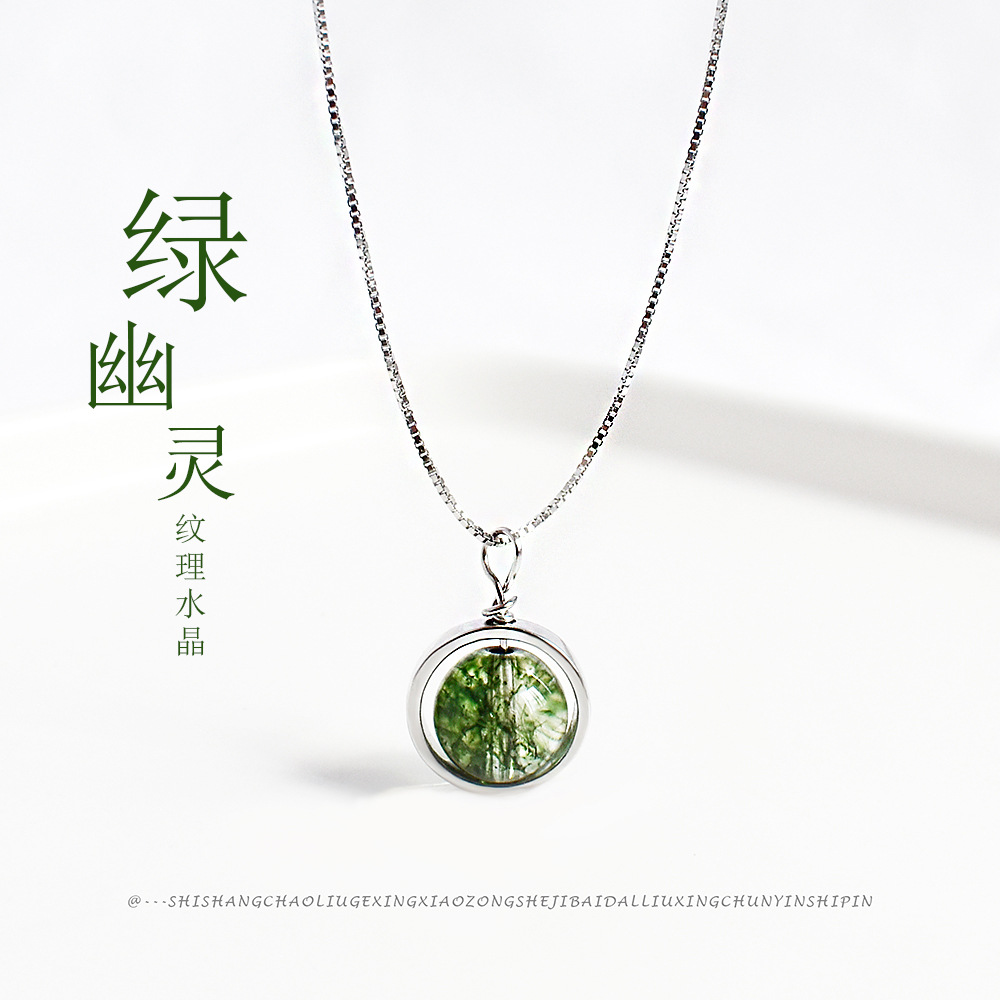 シンプルな緑の幽霊の水晶のネックレスs925純銀の気質の女性の水晶の鎖のチェーンのファッションの個性のファッションの装飾品