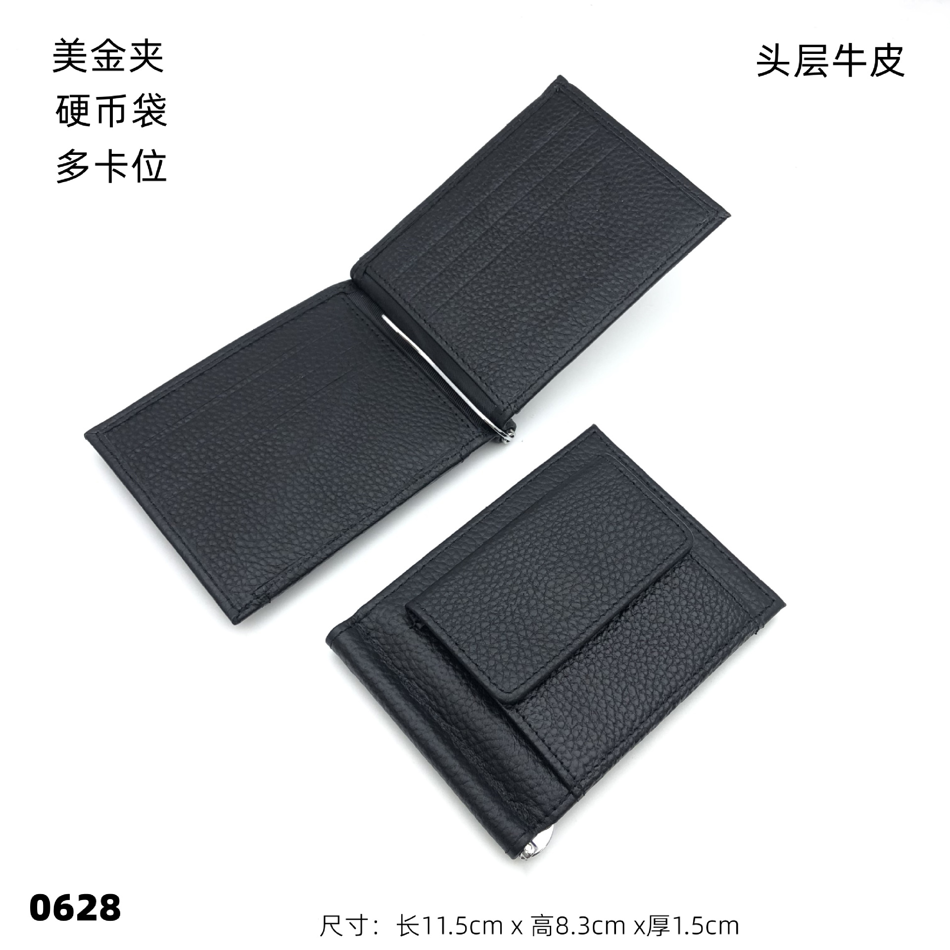 美金夹头层牛皮荔枝纹钱包硬币袋全透明镜窗卡包多卡位零钱包原厂