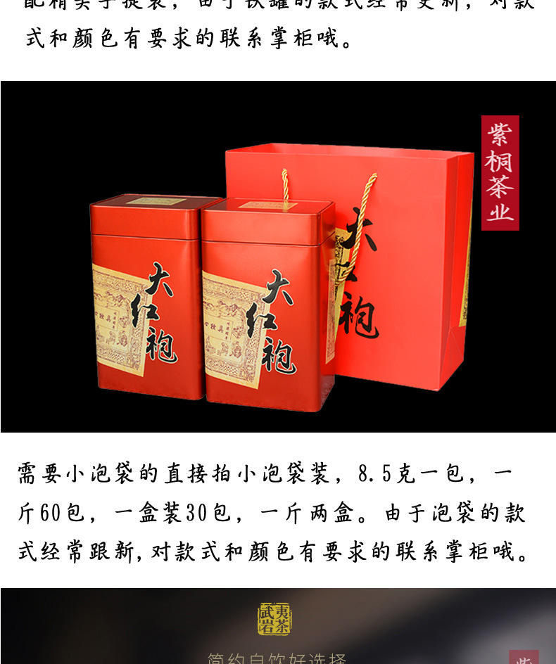 武夷山岩茶濃香大紅袍茶葉卸売口糧用茶高山烏龍茶小袋鉄缶入り