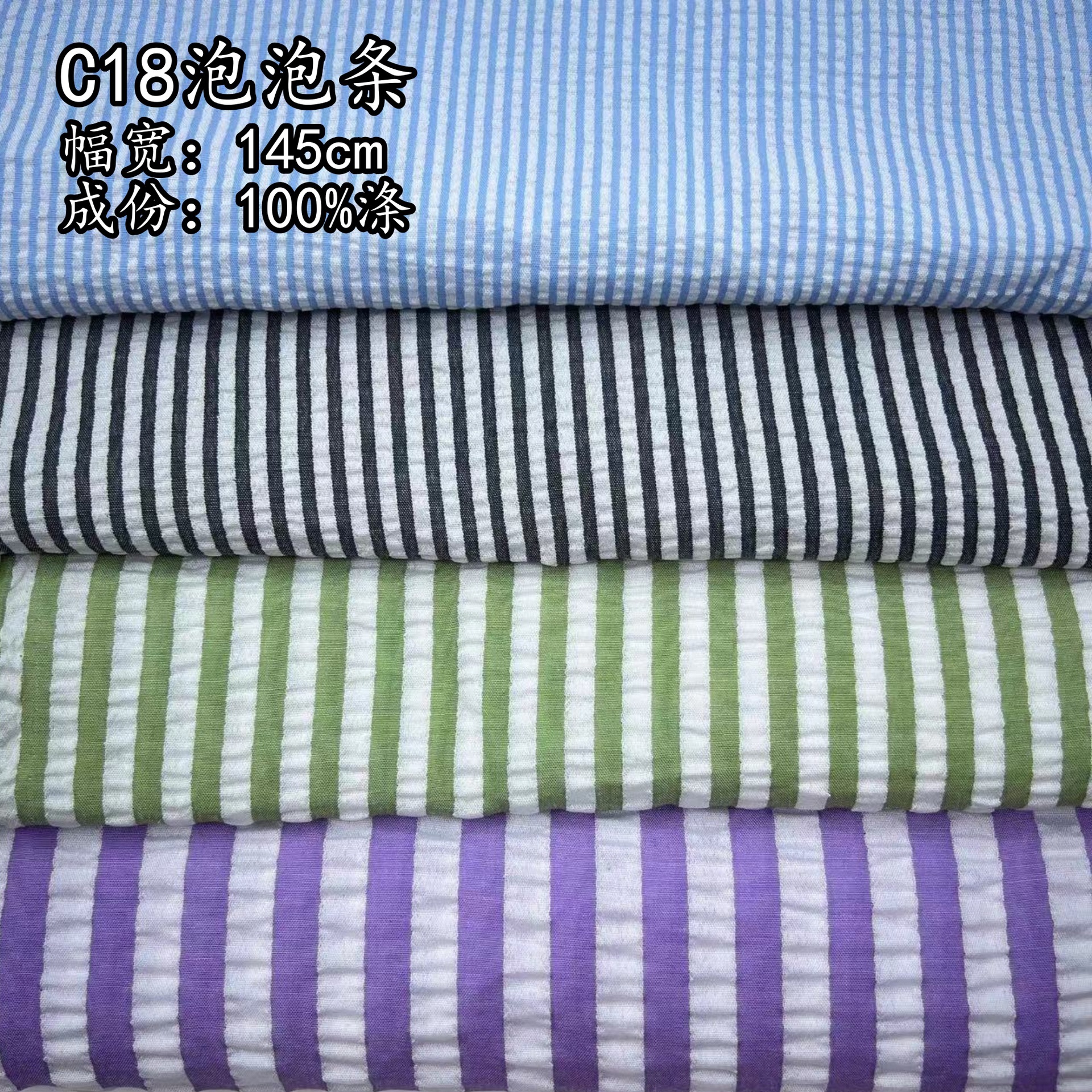 现货全涤泡泡条粉嫩清新色系春夏童装连衣裙衬衫帽子条纹面料