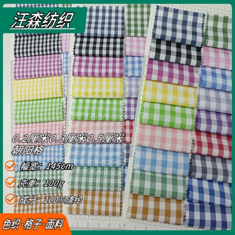 0.2厘米0.3厘米0.5厘米0.8厘米涤纶色织高密朝阳格子布料衬衣面料
