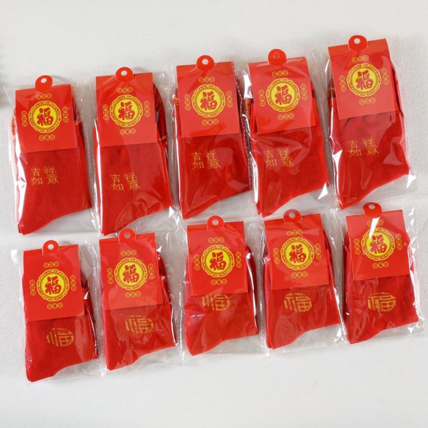祝日の大きい赤い靴下の福の字の本命の年の女性の靴下の赤い靴下の男性の金の結婚の卸売りのお祝いの靴下の独立して包みます