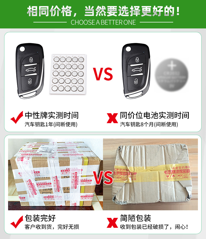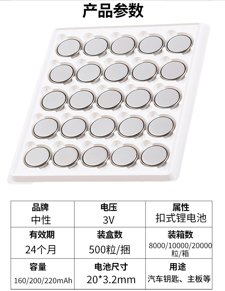 1.2032(A品大电流)发25粒/盘,500粒/捆,1万粒/箱的大电流电池。(适用于汽车钥匙遥控器,耳温枪,体脂称上使用)