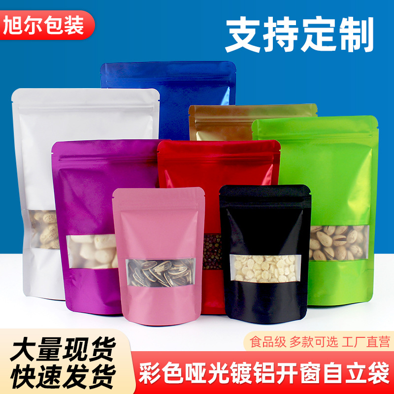 カラーアルミ箔自封袋開窓マットメッキ自立袋魚餌密封ビニール袋フロスト食品包装袋