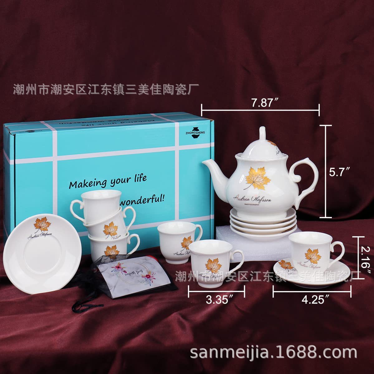 品名:中13头8寸壶镀钛金咖啡茶具(圆形矮壶,带铁架彩盒包装)