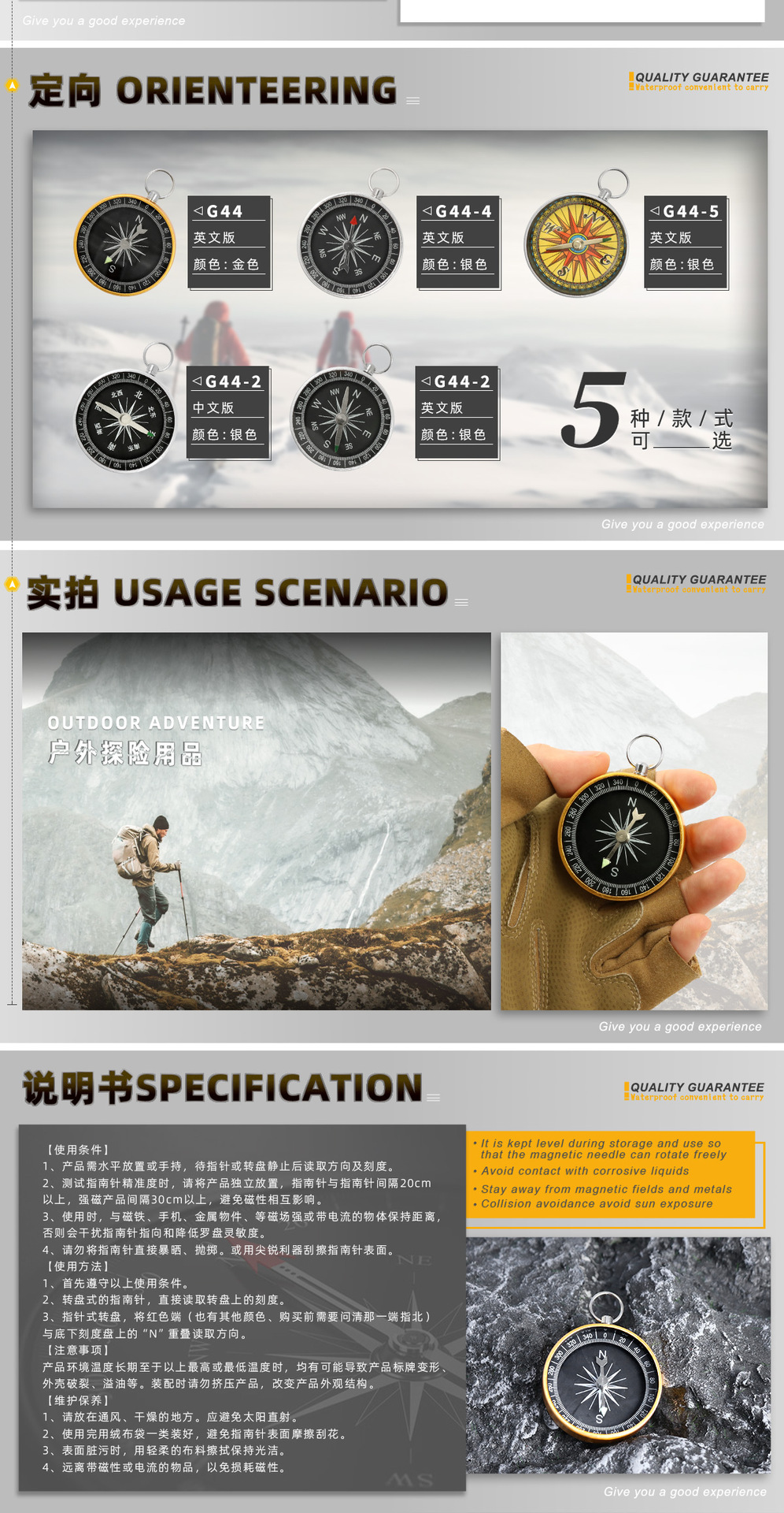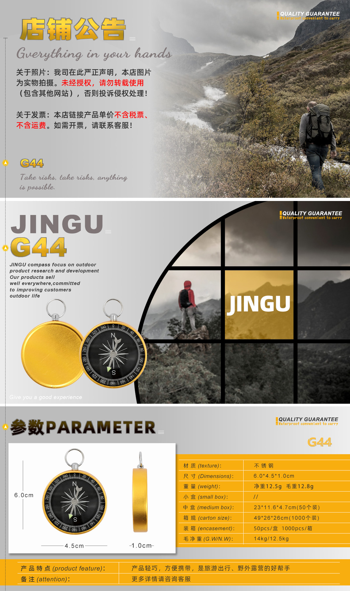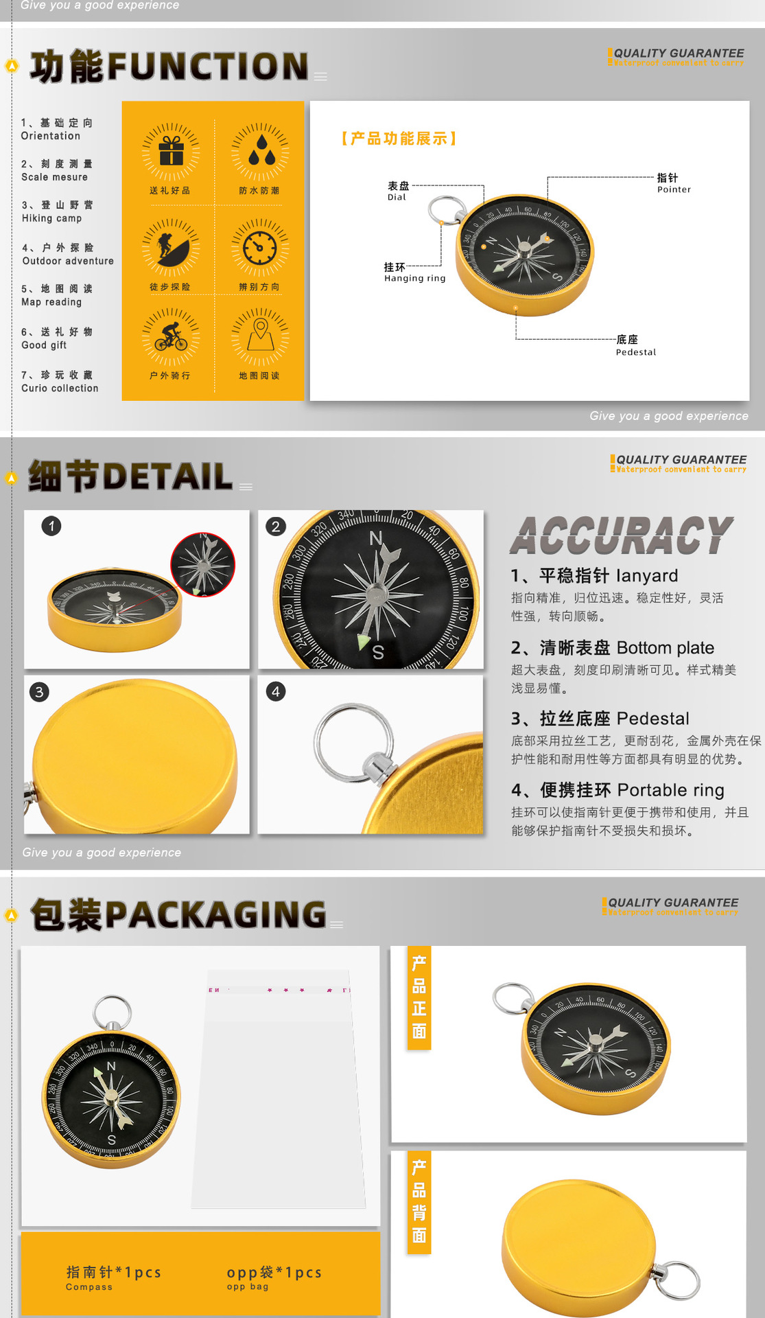 工厂批发 G44户外钥匙扣金属指南针现货 铝合金材质