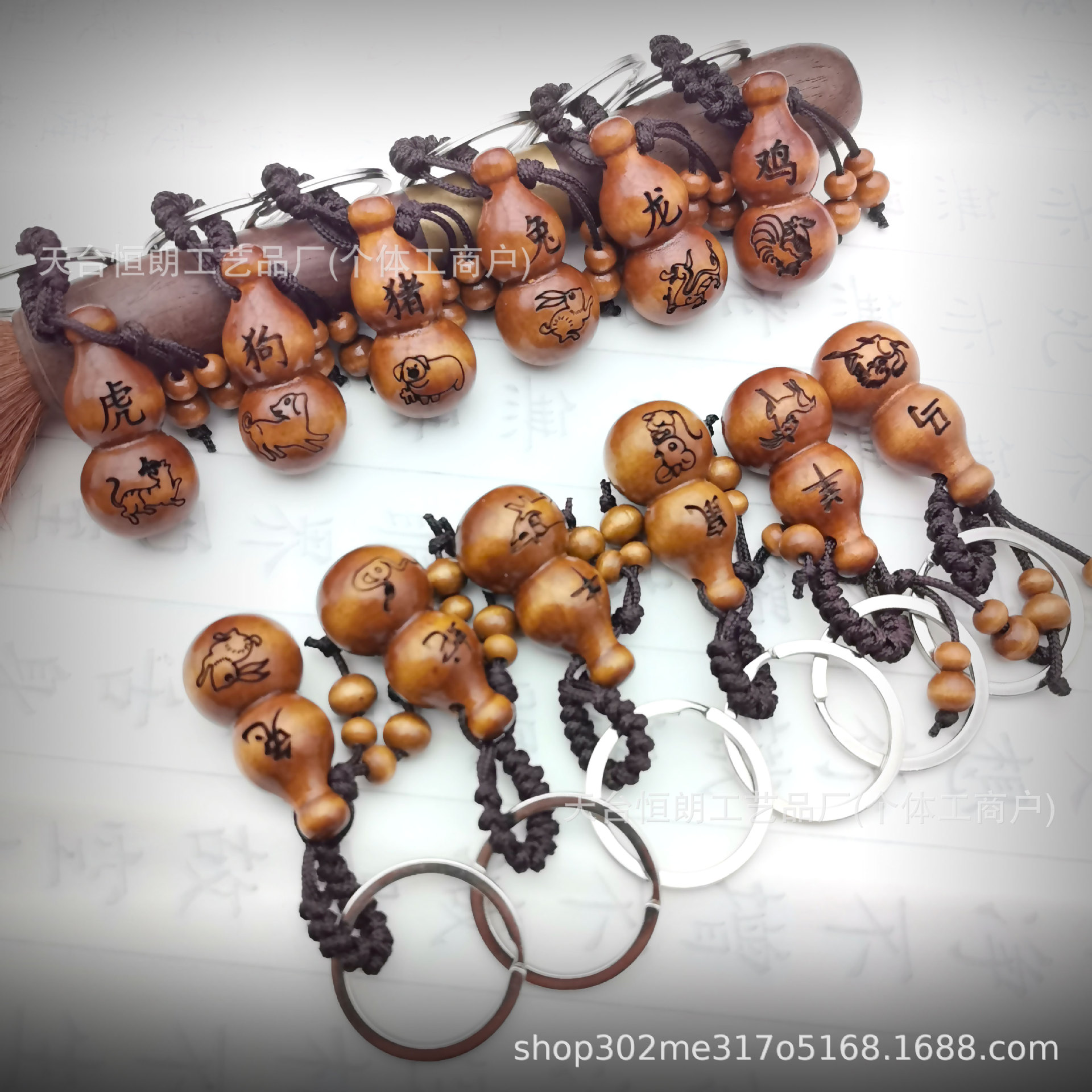 【品名】:12生肖桃木钥匙扣