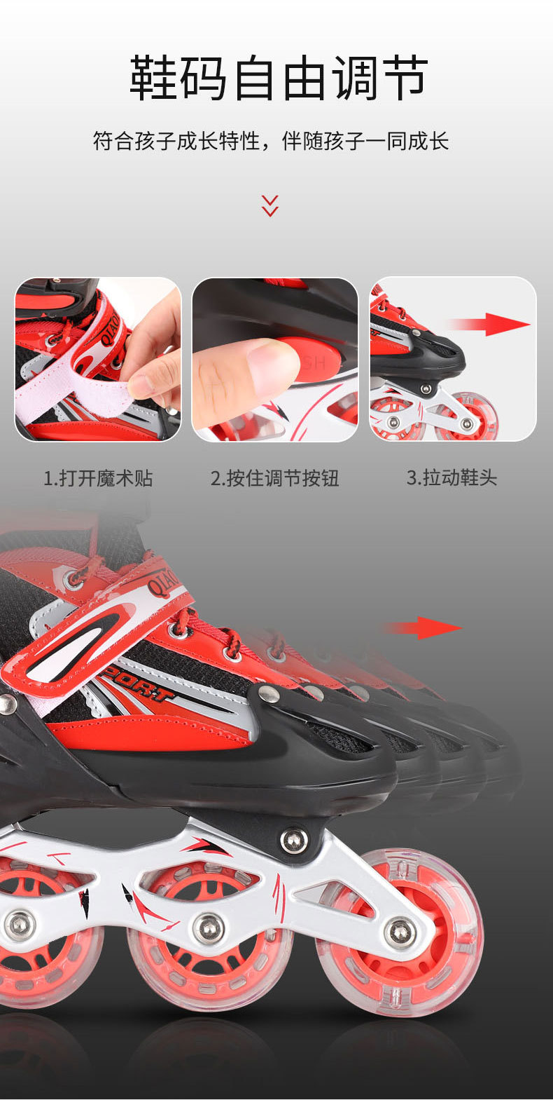 メーカー卸売りスケート靴子供用ローラースケート靴ローラースケート靴大人の直列調整シングルフラッシュ靴