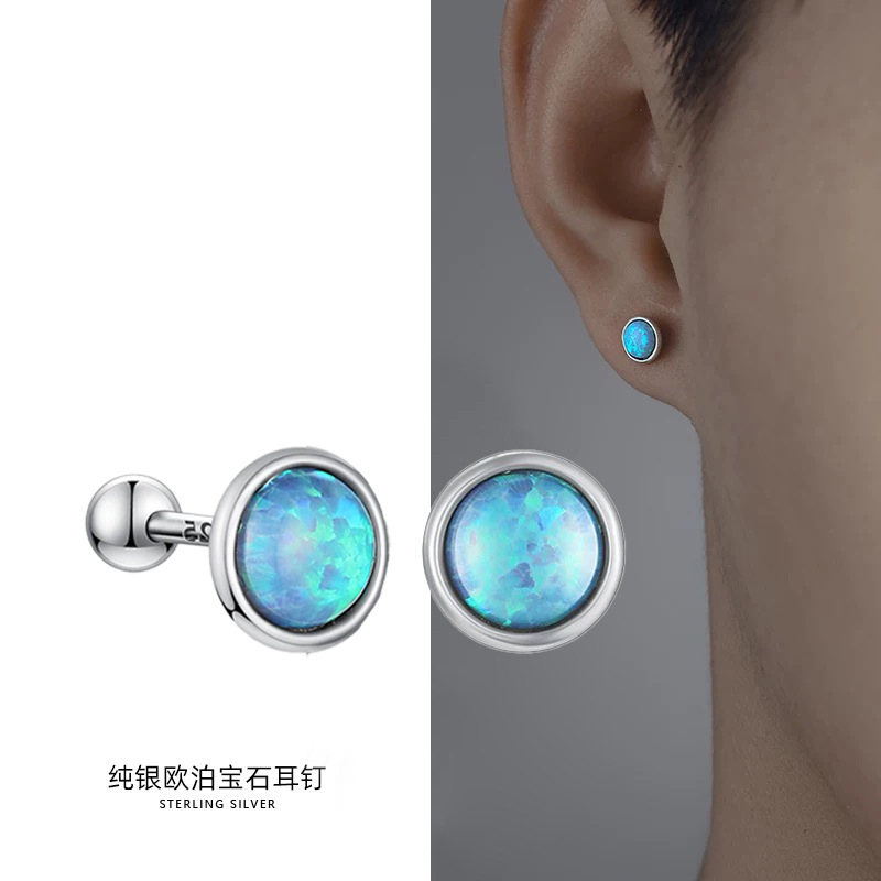 s925纯银耳钉男气质轻奢螺丝拧扣耳骨钉小众独特几何圆形耳饰批发