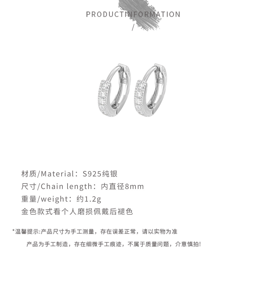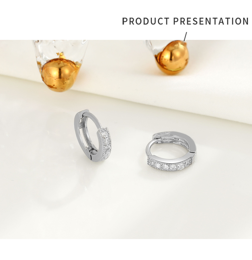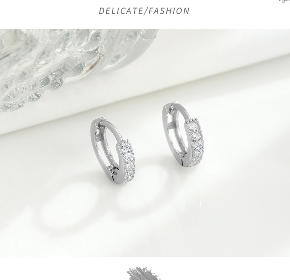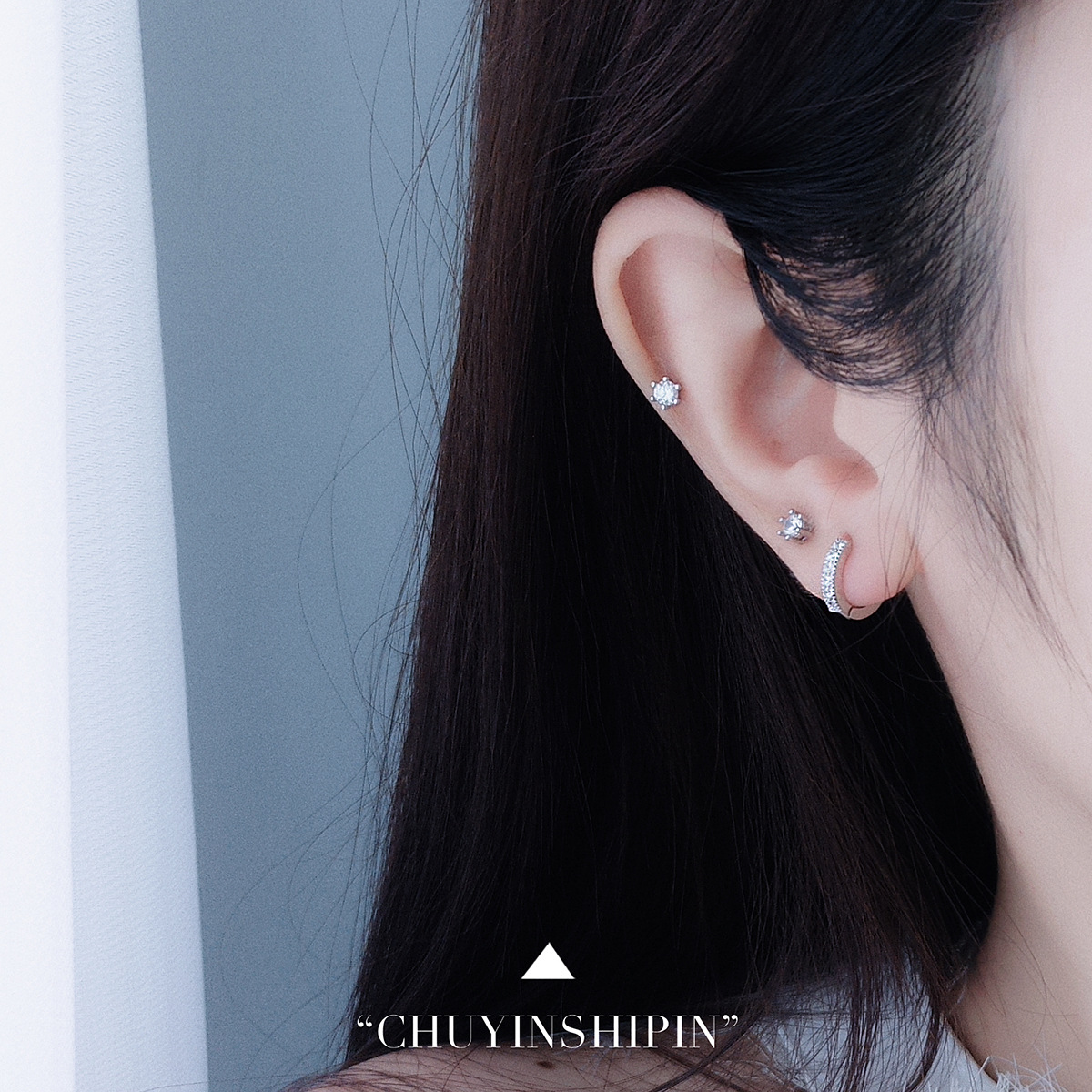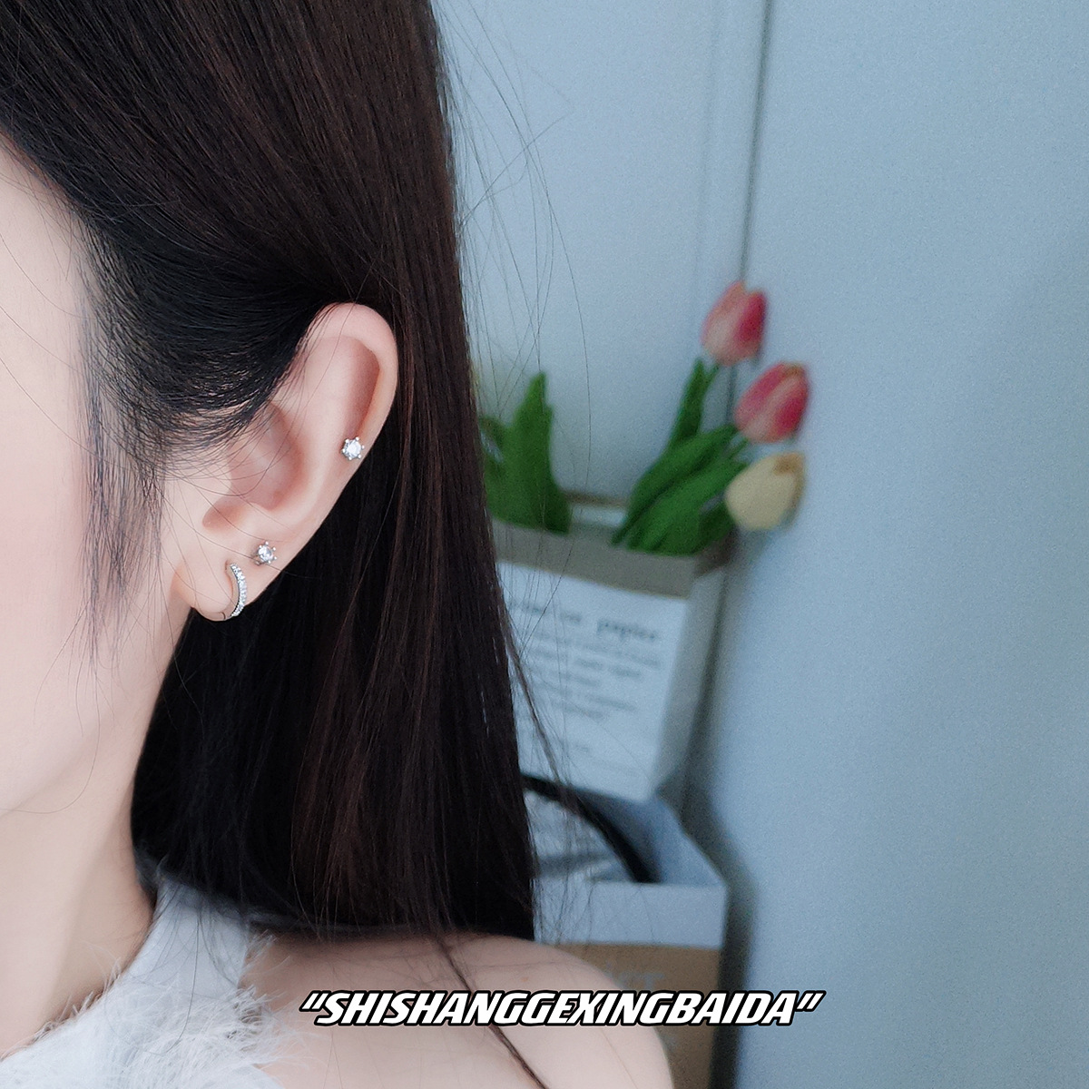 S999 純銀ダイヤモンドイヤリング、小さめイヤーボーンバックル、ピアス、ヨーロピアンスタイルイヤリング、シンプルイヤリング