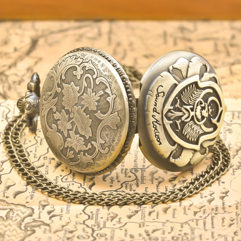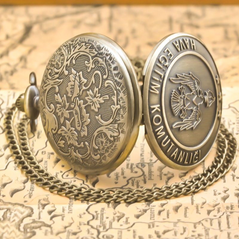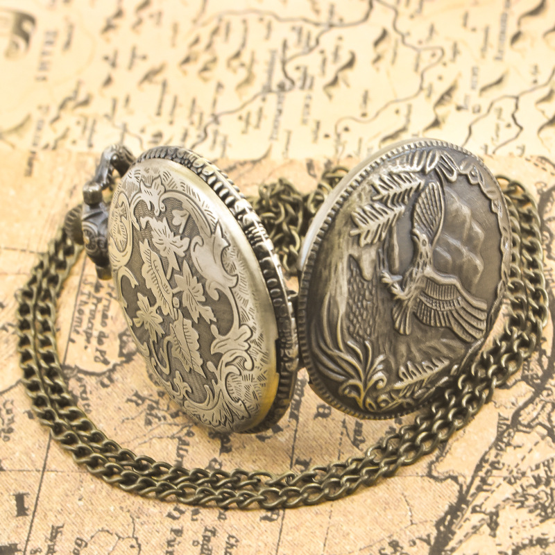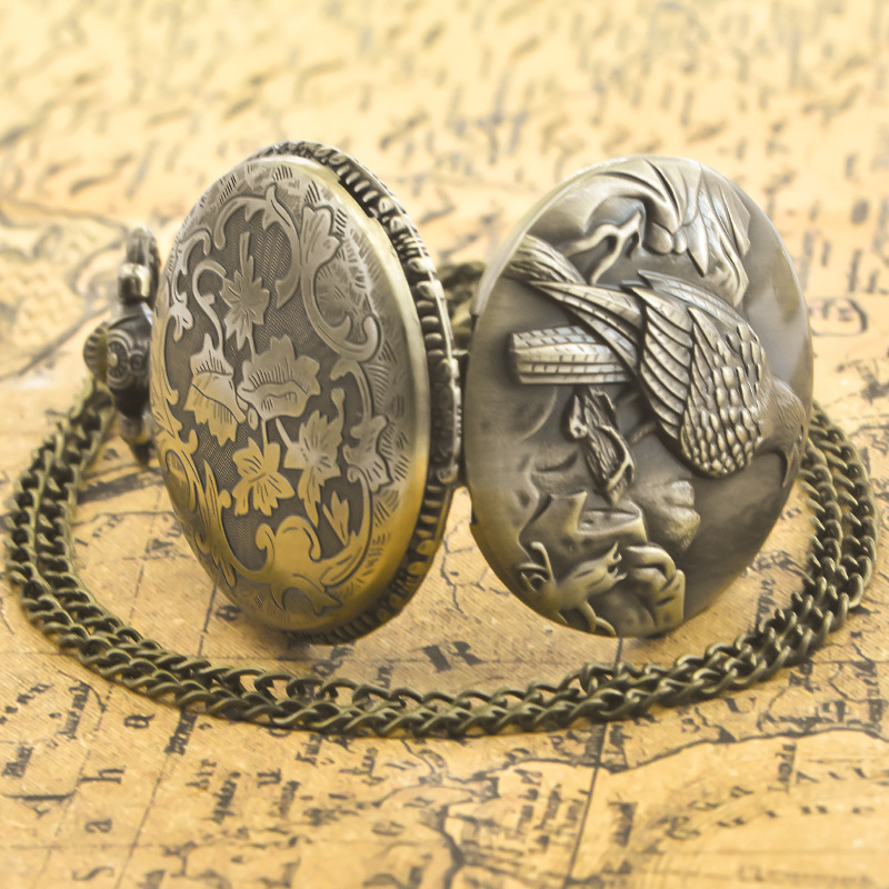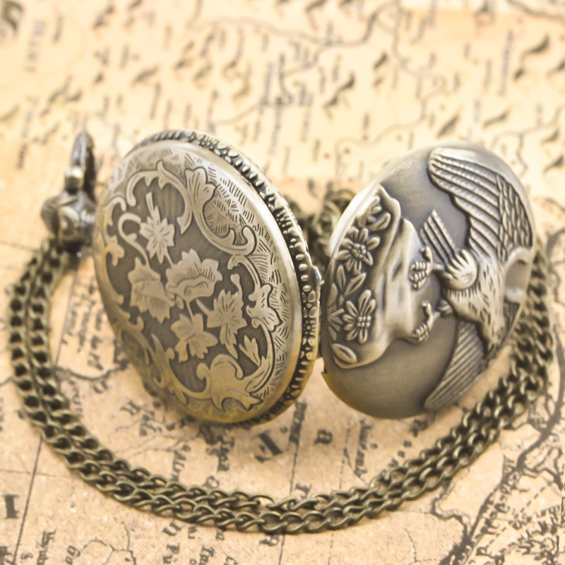 新型のレトロなフリップ式懐中時計、中国風の懐かしい記念時計、男女兼用のコレクション用クォーツネックレス時計