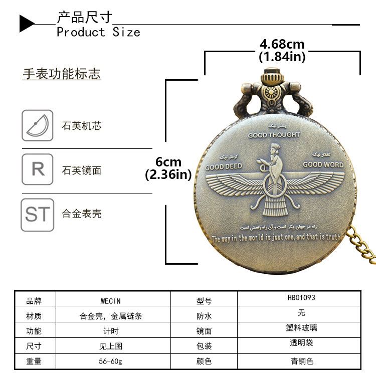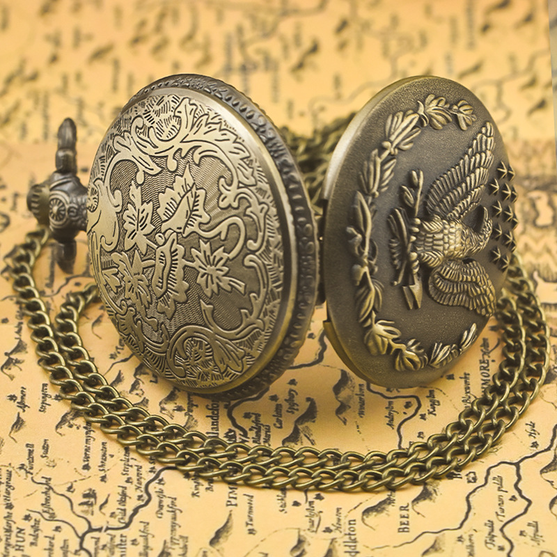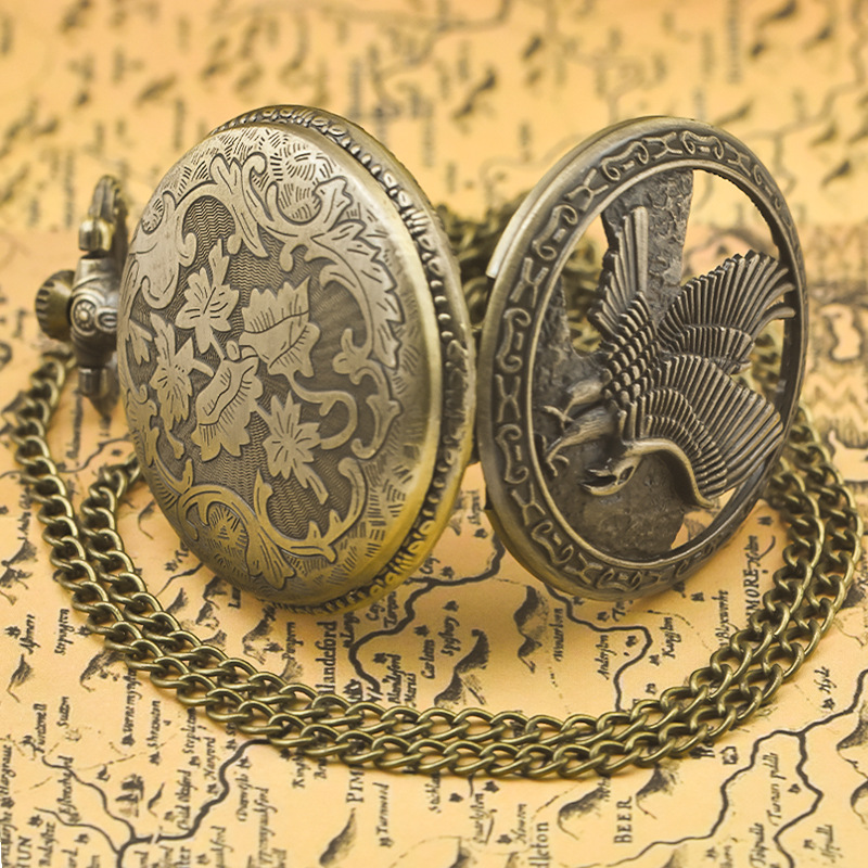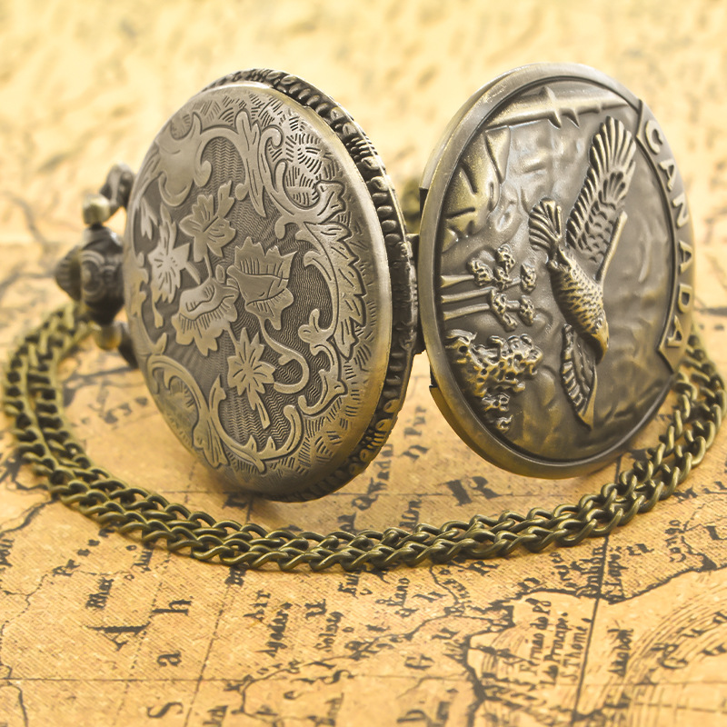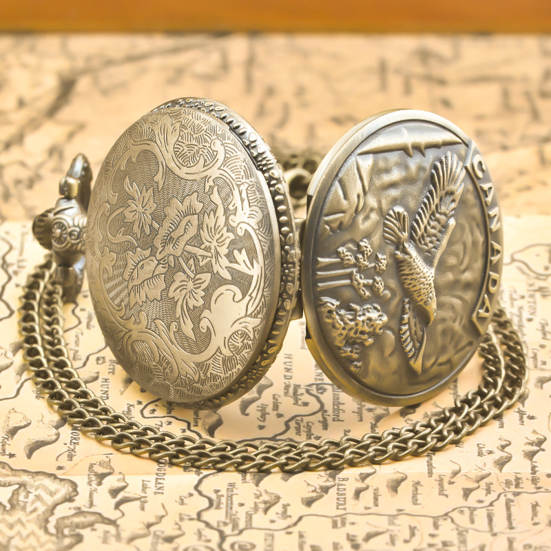 新型のレトロなフリップ式懐中時計、中国風の懐かしい記念時計、男女兼用のコレクション用クォーツネックレス時計