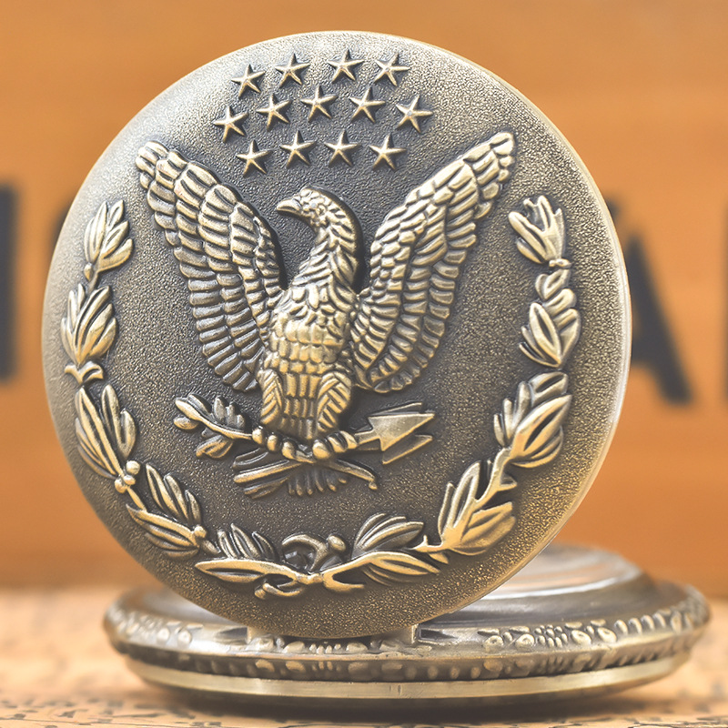 レトロな青銅の懐中時計の十字の図案の有名人はふたをひっくり返して石英の懐中時計の個性のシンプルな祝日の贈り物の卸売りを覆います。