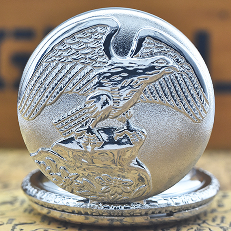 カップル懐中時計復古風透かしハート型銀色懐中時計石英彫刻懐中時計8020