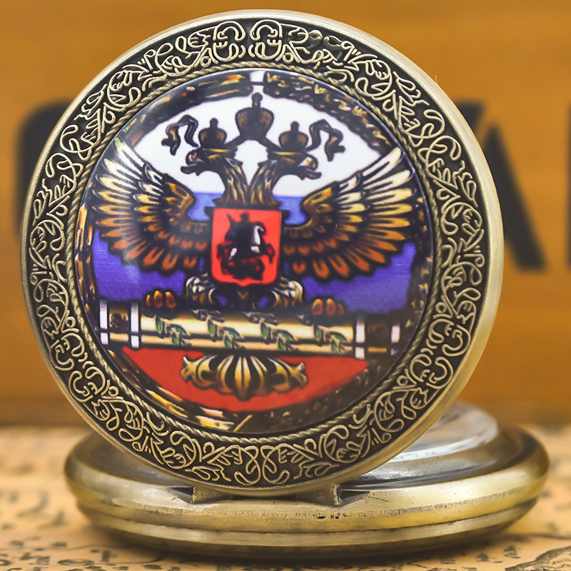 外国貿易の大きいサイズの間の金のハンマーの鎌のアイコンの懐中時計の古銅色のレリーフの地球の五角星の麦の穂の懐中時計の卸売り