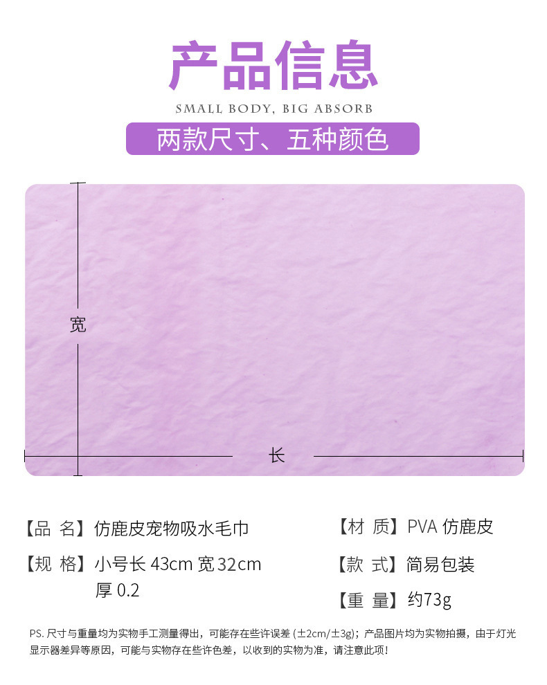 66*43 センチメートル PVA ペットタオル速乾性模造鹿革タオルアマゾン模造鹿革タオルペット吸収性タオル