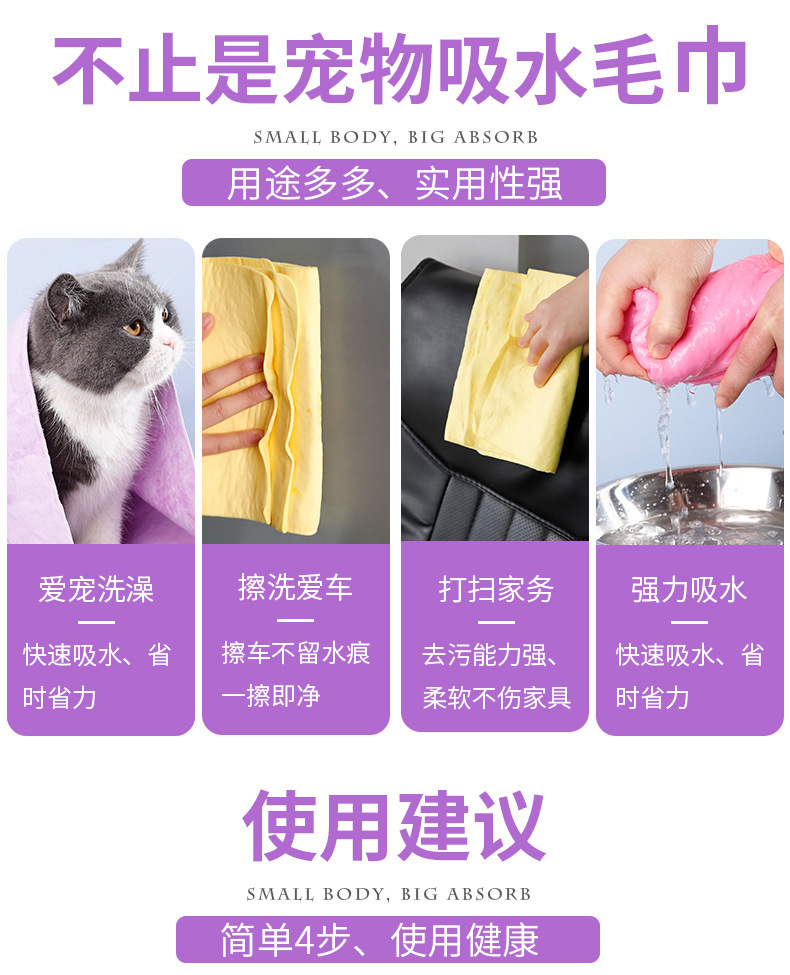 簡単なサイズのペット吸水タオル卸売り猫犬速乾鹿皮タオル入浴バスタオル清掃用品