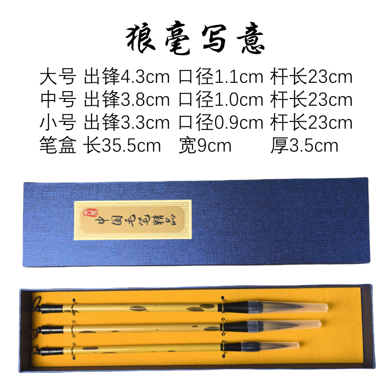 大量の現物狼ミリ毛筆セット毛筆金狼書画大中小三本は木箱辰毛龍筆工場に送られた