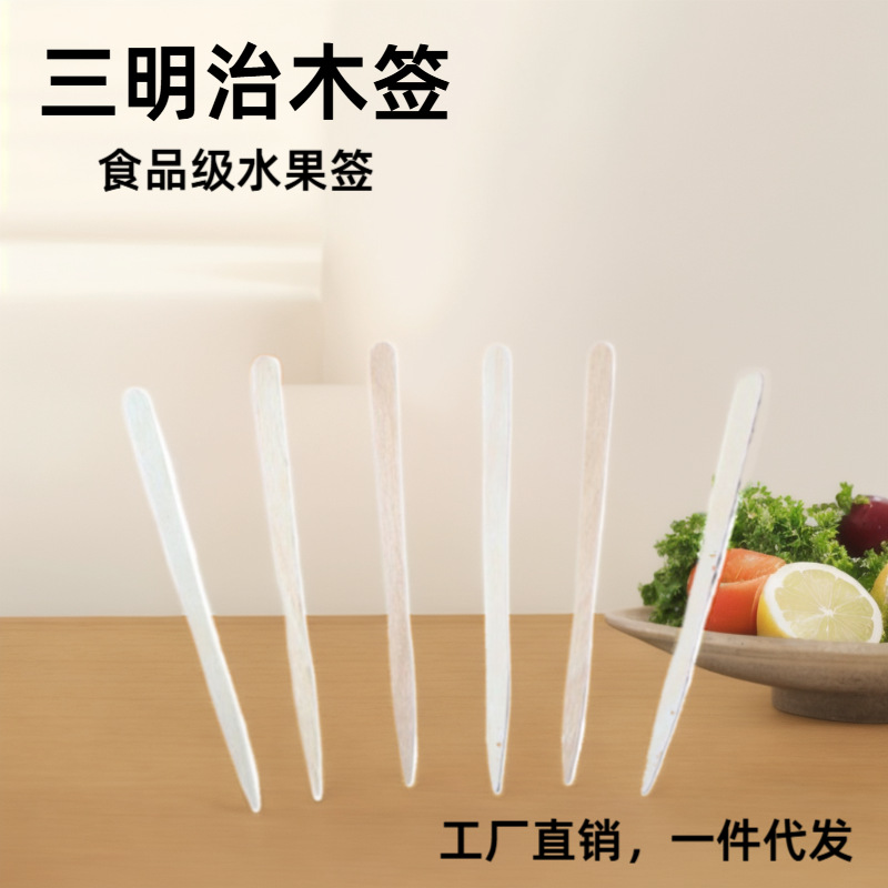 一次性木签子三明治流线形木签水果叉汉堡签眉毛手柄签三文治签子