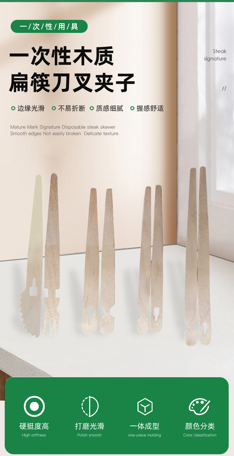 個別包装された使い捨て木製フードクリップ、ヨーロッパスタイルの平箸、子供用の十字平箸