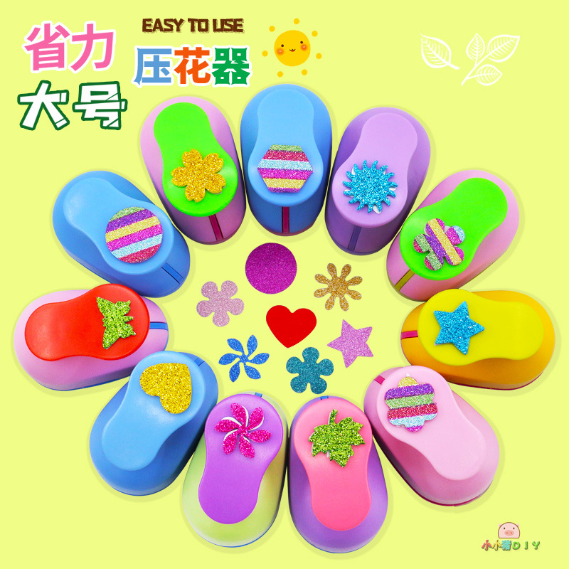 4.将所压印出的图形通过组合,粘贴,绘画等方式,再结合花边剪,边界、边角打花器,彩笔等,尽情发挥想象力一件独特精美的美术手工作品等着你完成。