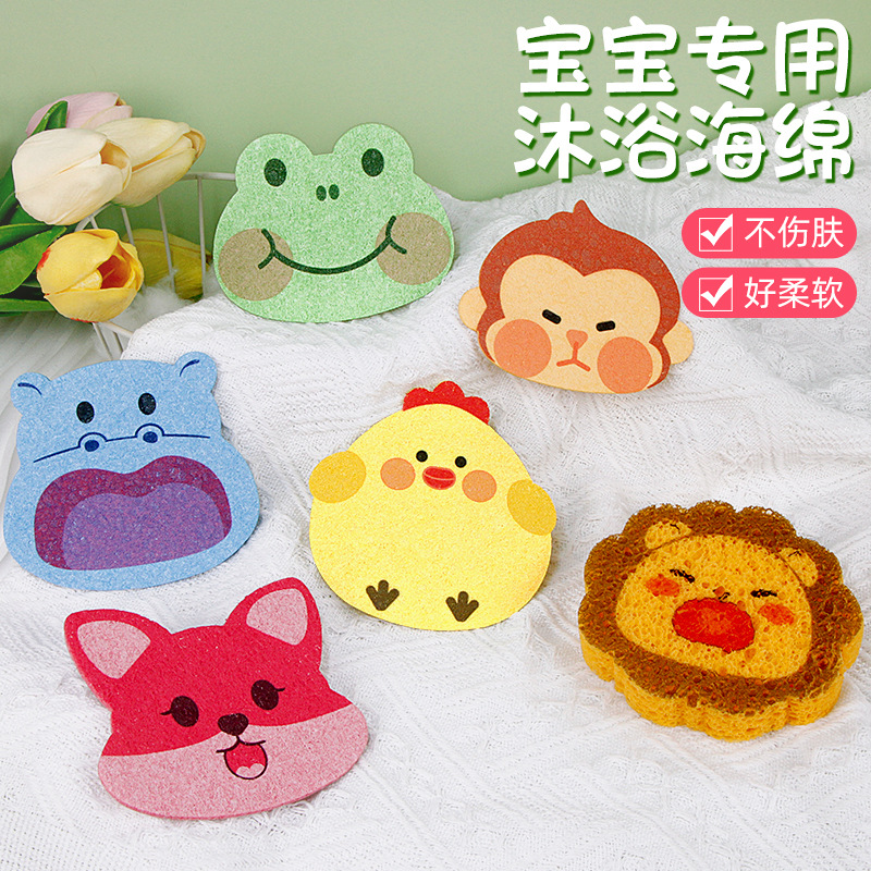 国境を越えた漫画の動物天然木材パルプスポンジバスタオルバスボールバスワイプ洗浄背中こすりバスタオルバスコットン