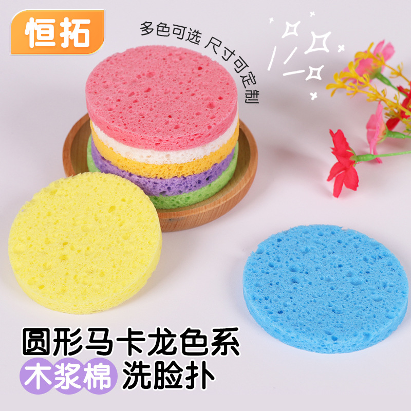 木浆棉洗脸扑圆形马卡龙美容清洁纤维素洗脸海绵卸妆洁面扑厂家
