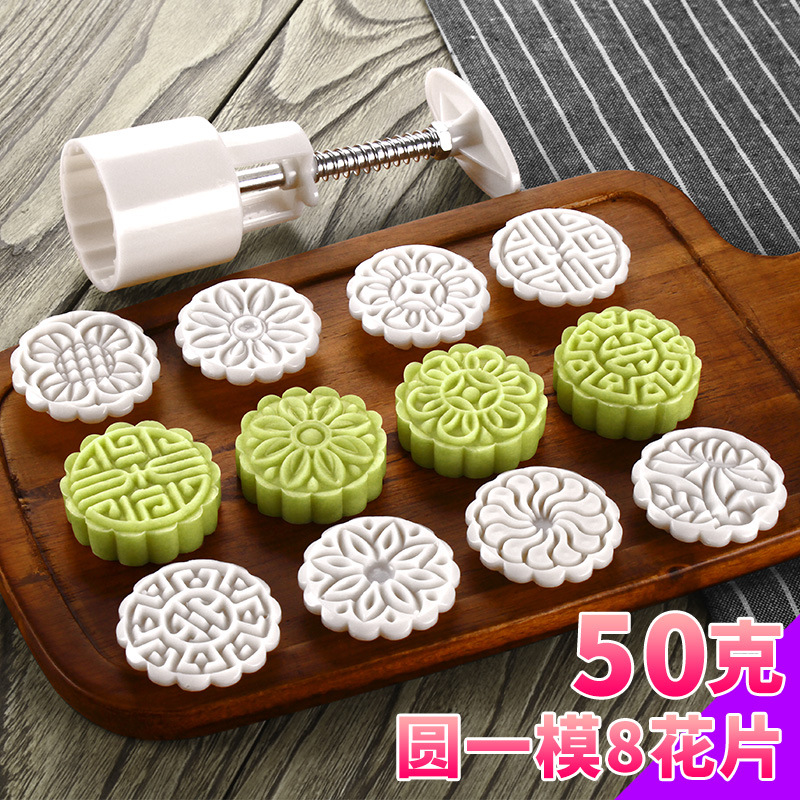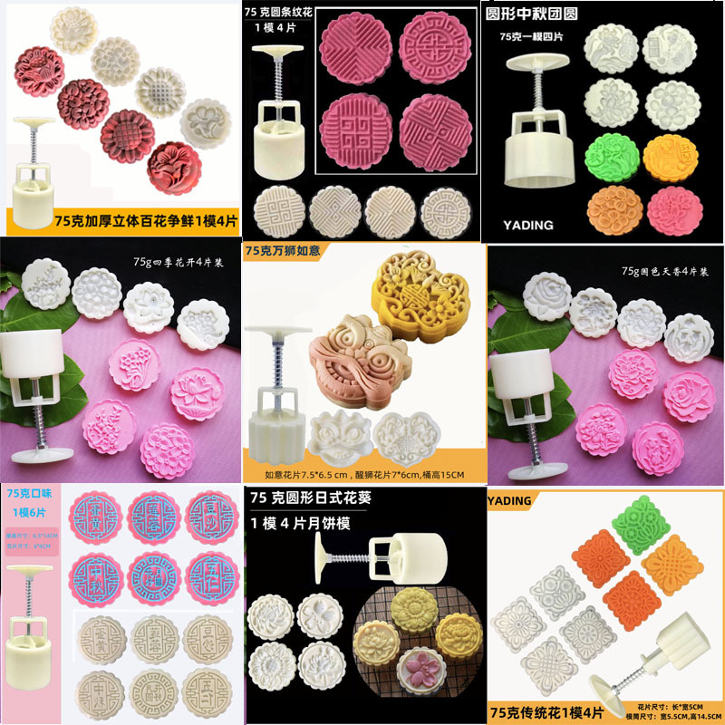按压式月饼模加头圆 带三个花片