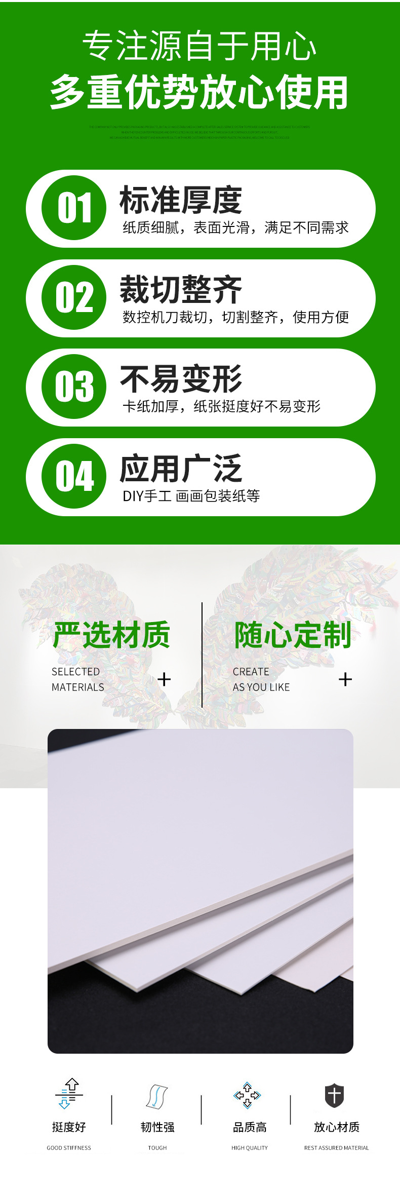 1.5mm白い紙板厚紙詰まり絵画diy段ボール包装用紙白い段ボール紙a4紙白い紙詰まり紙