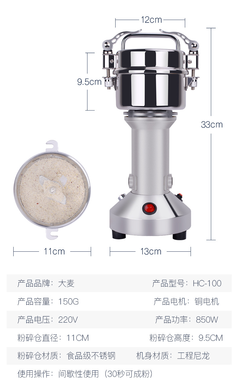 Damai縦型100グラム家庭用小型香調味料粉砕機漢方薬粉砕機五穀粉砕機