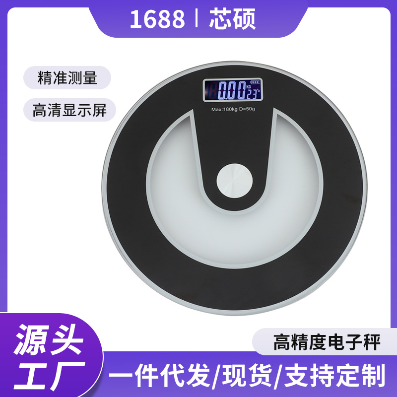 家用智能电子秤室内小型体重秤钢化玻璃人体秤圆形人体健康秤批发