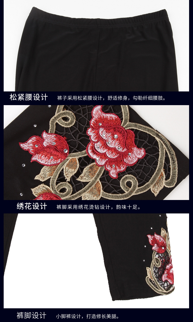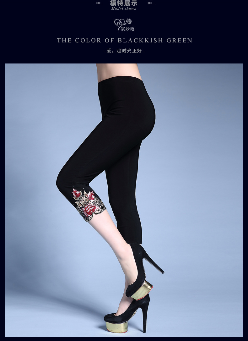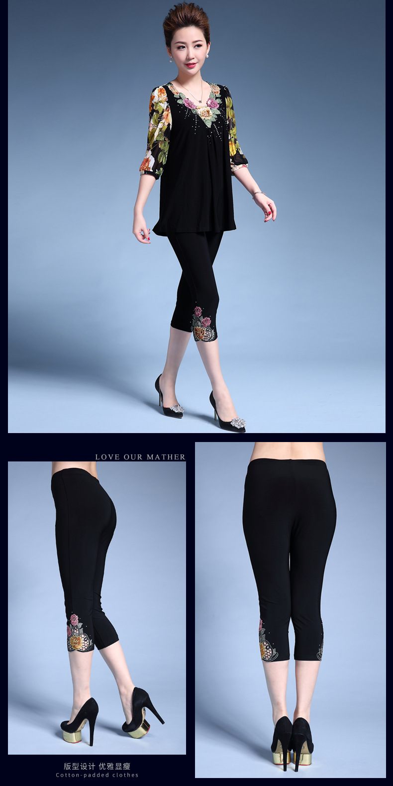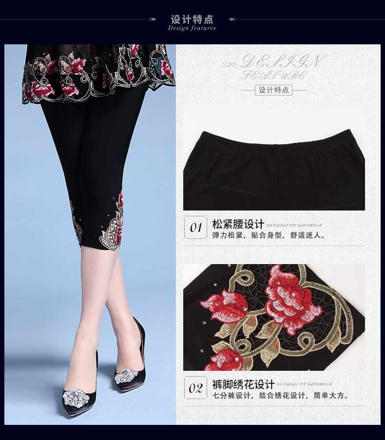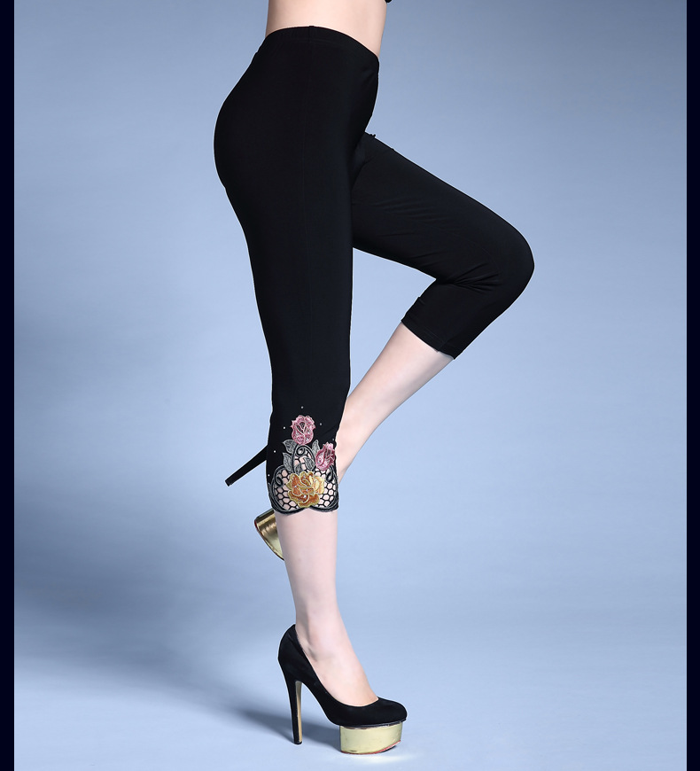夏の新刺繍クロップドパンツプラスサイズの女性のレギンス着用薄い脂肪 MM 100kg ウエストゴム卸売