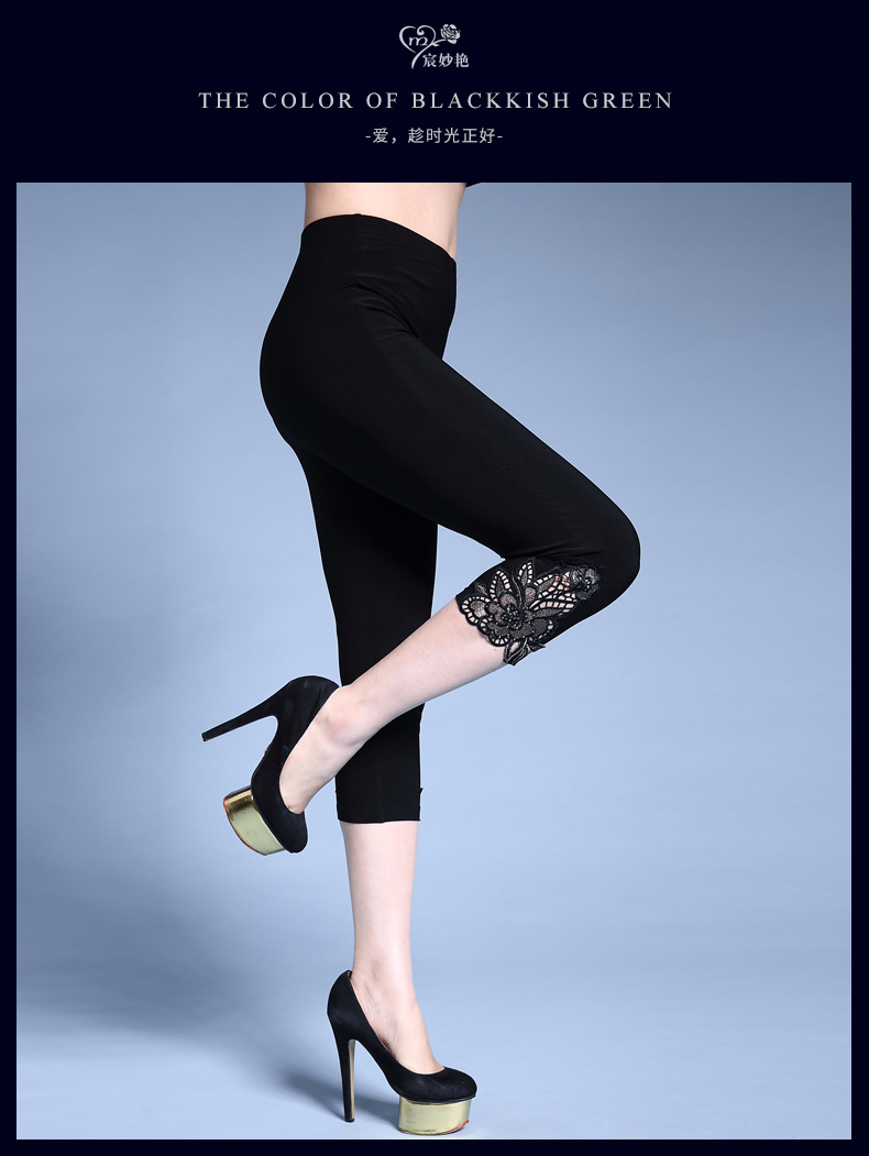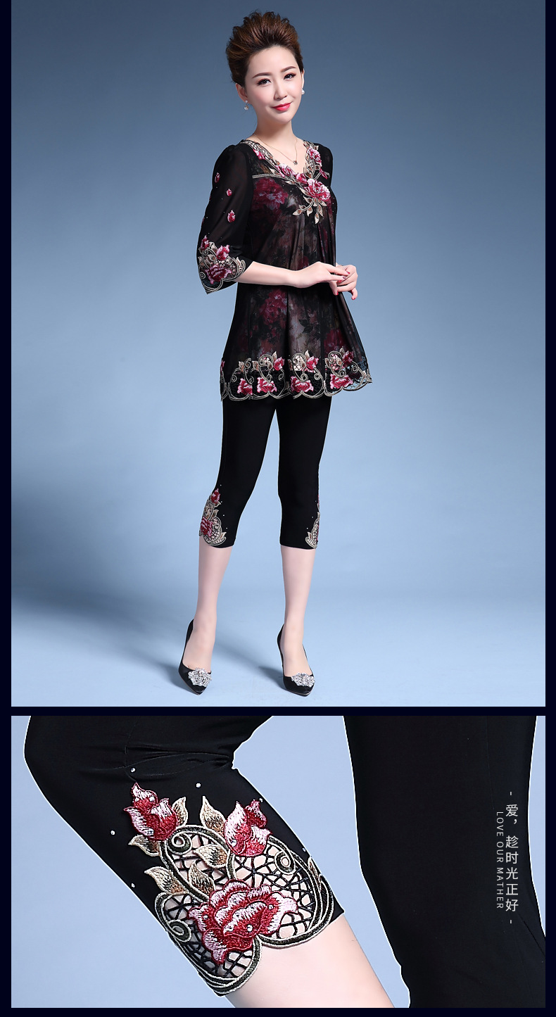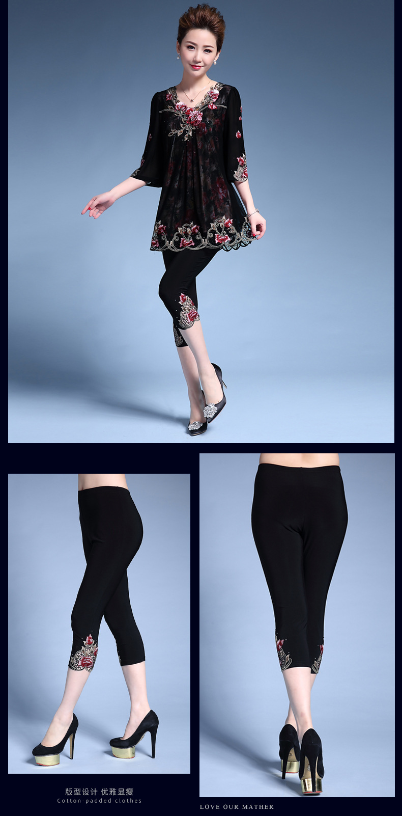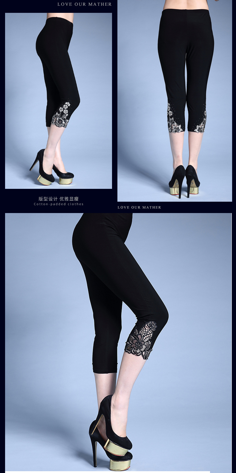 夏の新刺繍クロップドパンツプラスサイズの女性のレギンス着用薄い脂肪 MM 100kg ウエストゴム卸売
