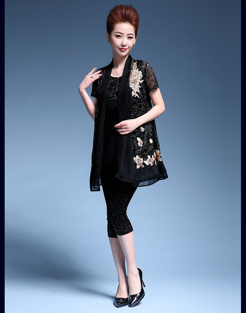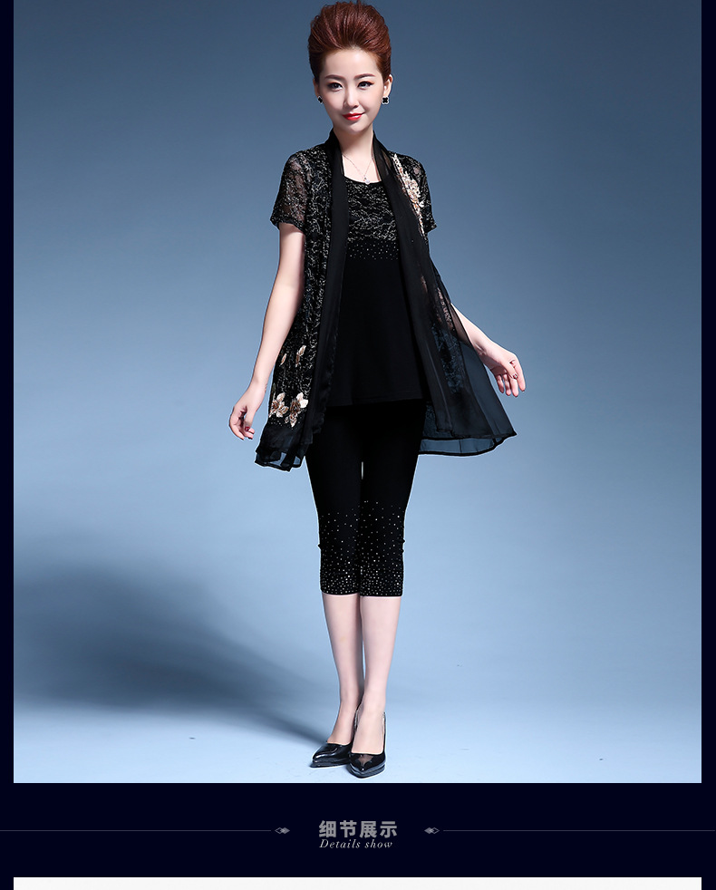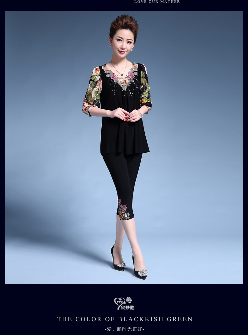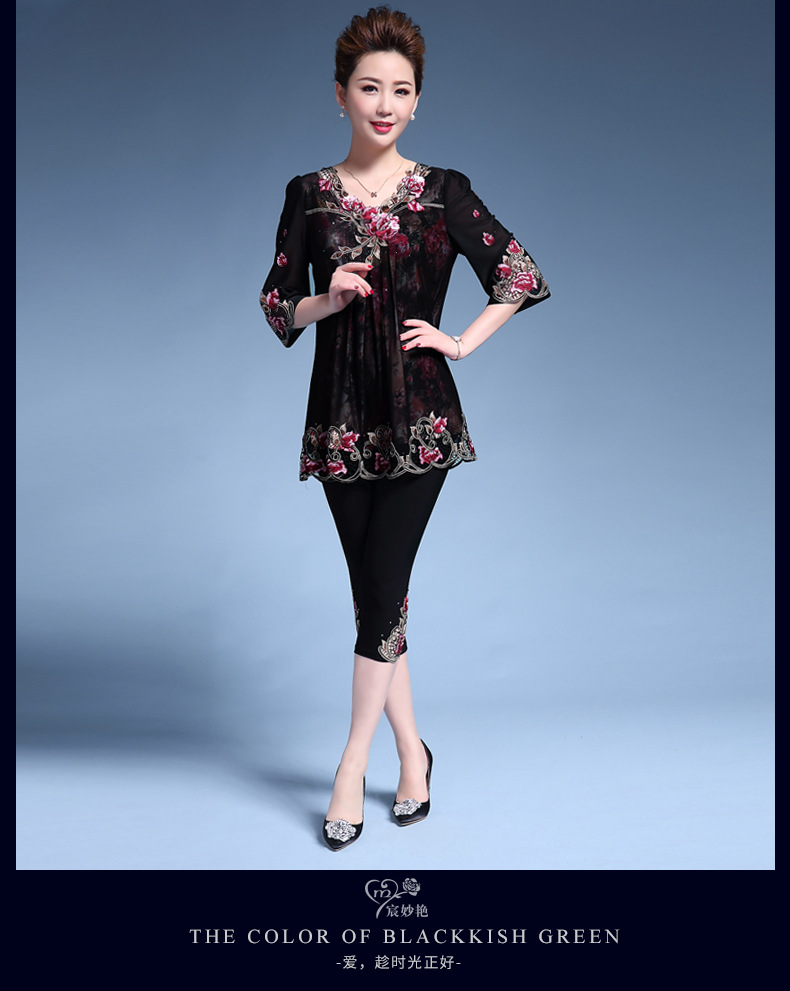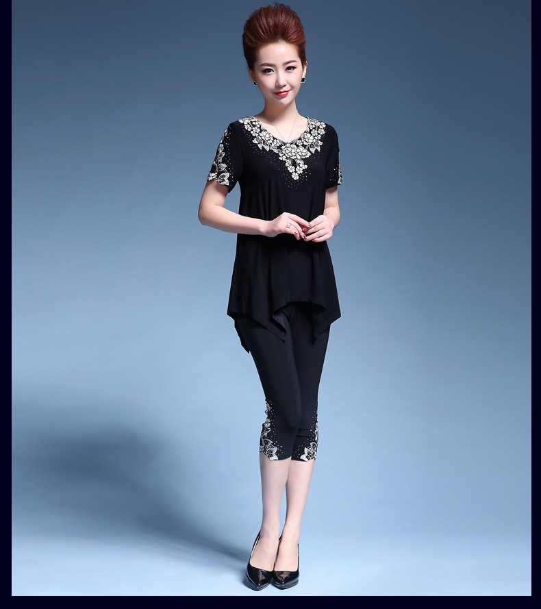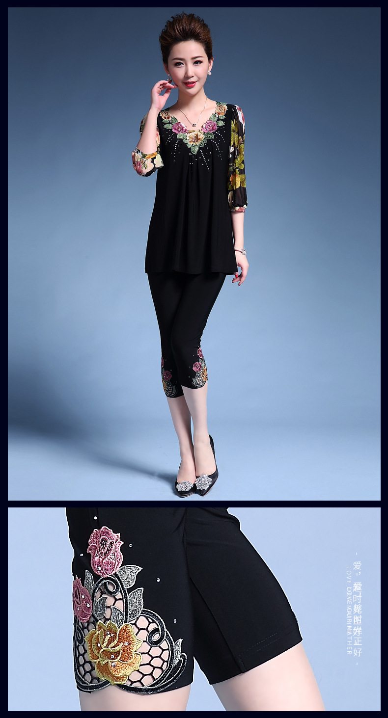 夏の新刺繍クロップドパンツプラスサイズの女性のレギンス着用薄い脂肪 MM 100kg ウエストゴム卸売
