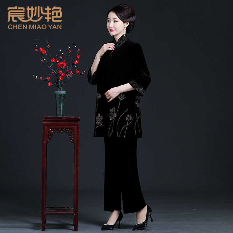 中高年女性の秋と冬の新しい気質ママドレスゴールドベルベットドレスハイエンドドレスチャイナドレス卸売ドロップシッピング