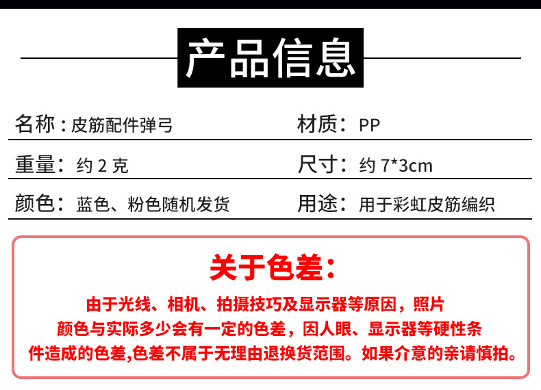 产品名称:彩虹皮筋配件弹弓(粉色,蓝色随机发货)