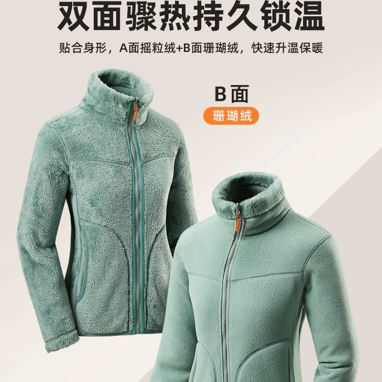 情侣抓绒衣女外套摇粒绒上衣秋冬双面穿加厚珊瑚绒卫衣开衫上衣