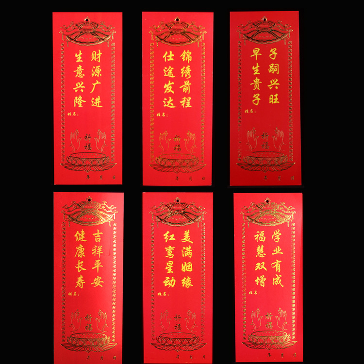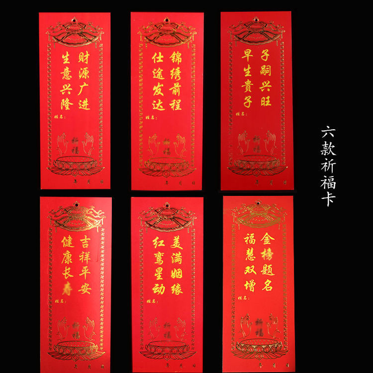願いカード赤の祈りカード願いカード祈りカード寺院蓮灯健康吉祥如意
