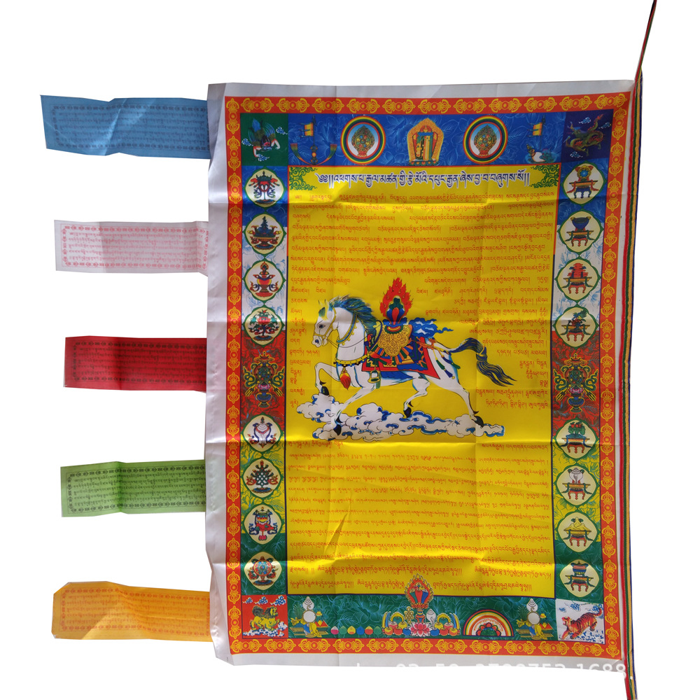 竖挂经幡单面大旗五色风马旗经旗百字明咒观音心咒六字真言莲师