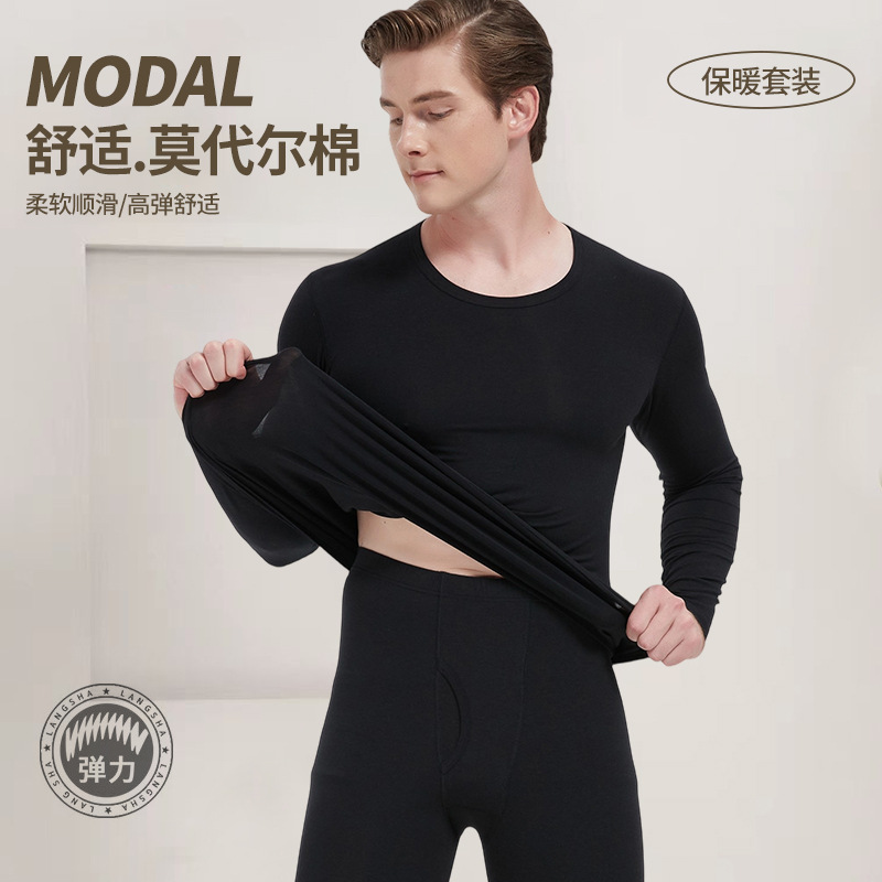 男士秋衣秋裤套装莫代尔棉纯色薄款保暖内衣弹力棉毛衫上衣秋裤套