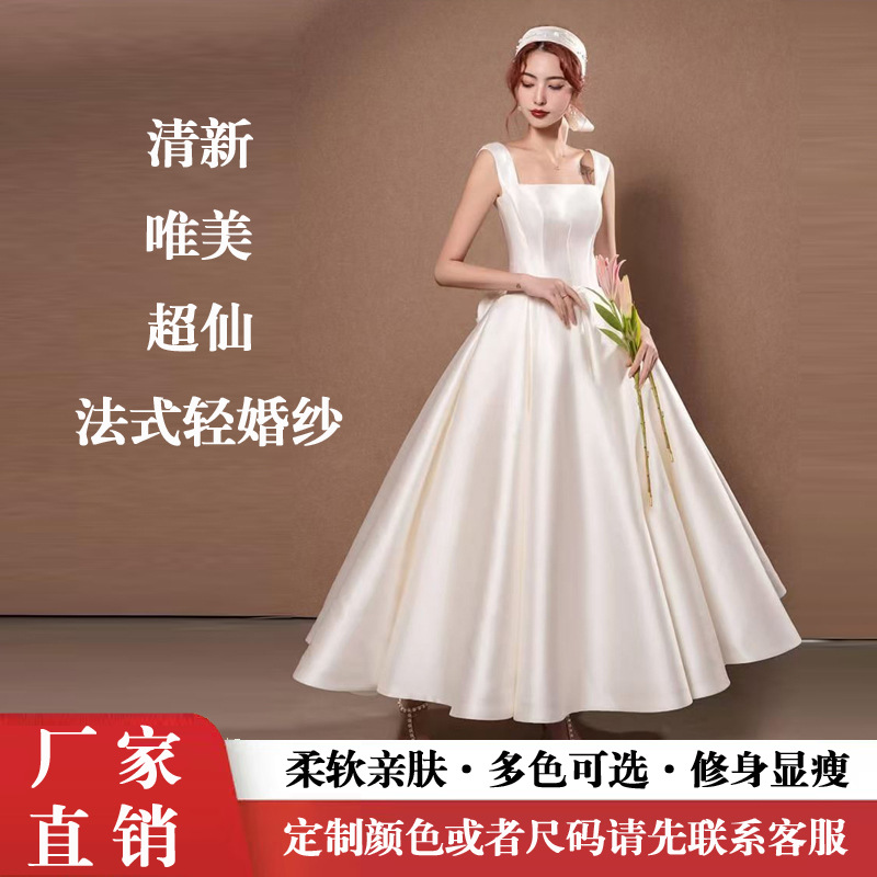 2024新型韓国版ウェディングドレス花嫁の結婚は肩をそろえて痩せたウェディングドレスの映画館のプレゼントの糸卸売りをしている