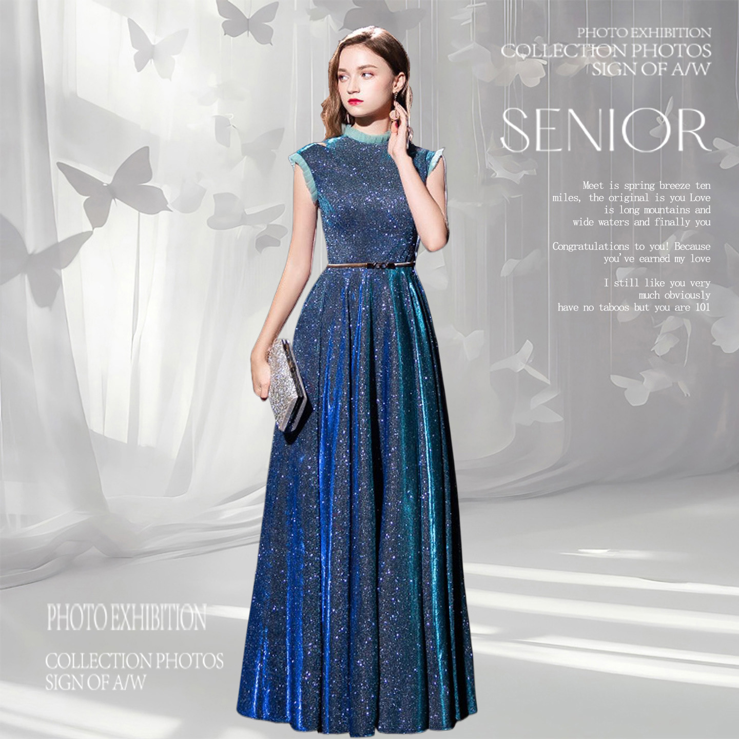 2025年新作レディースイブニングドレス、星空柄、華やかでエレガントなホストやパフォーマンスに最適なロングドレス