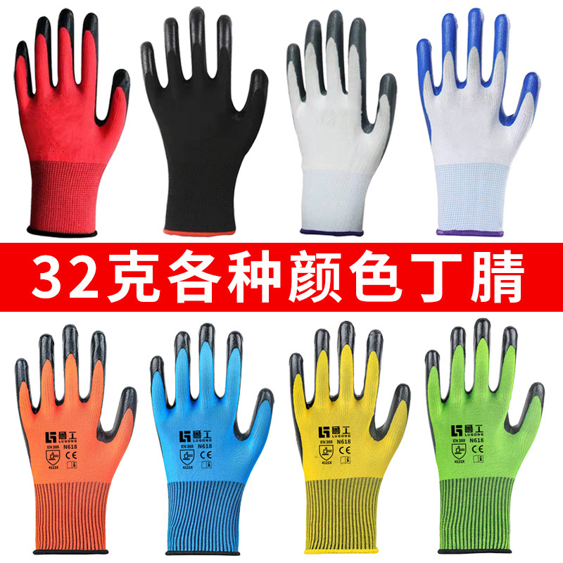ナイロン耐摩耗王滑り止めニトリル手袋工事現場作業用ゴム製安全手袋卸売Work Glove
