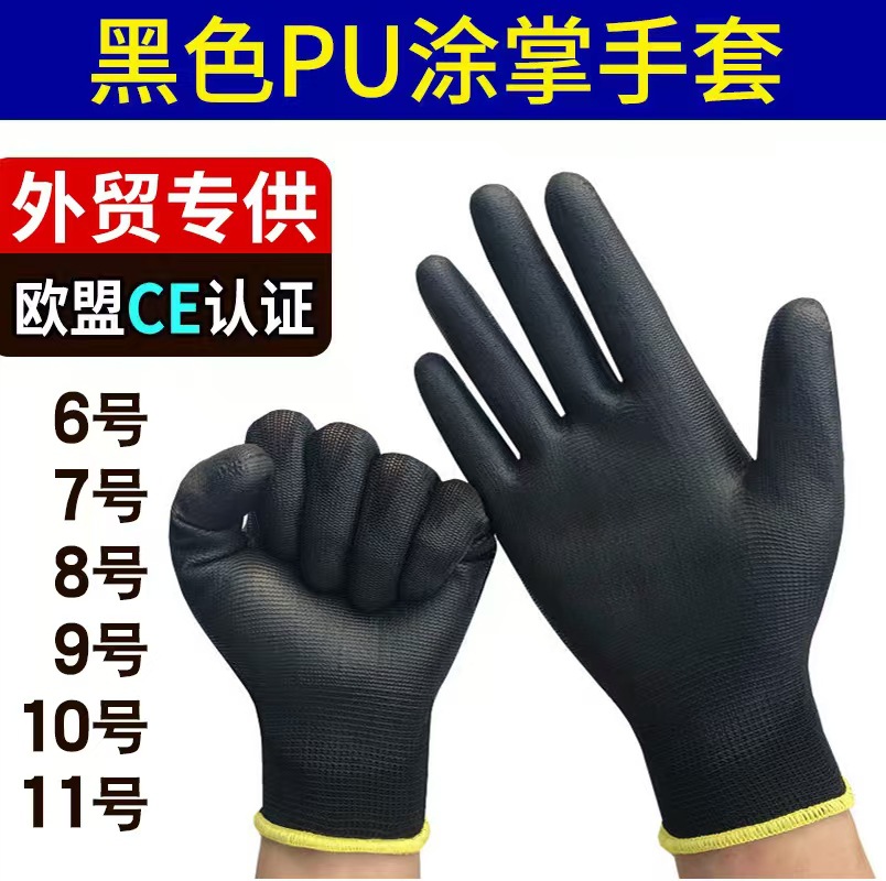 黒pu塗装手袋クリーン電子工場静電気防止コーティング労働保護手袋卸売り黒灰塗装手袋