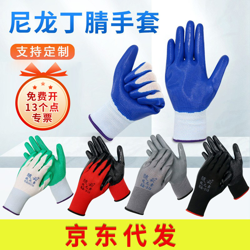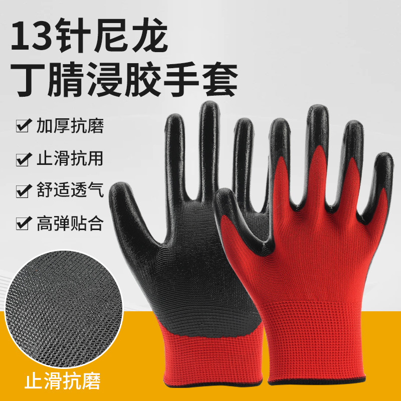 13针尼龙纱丁腈浸胶手套防滑耐磨工地手套干活涂胶防护手套批发