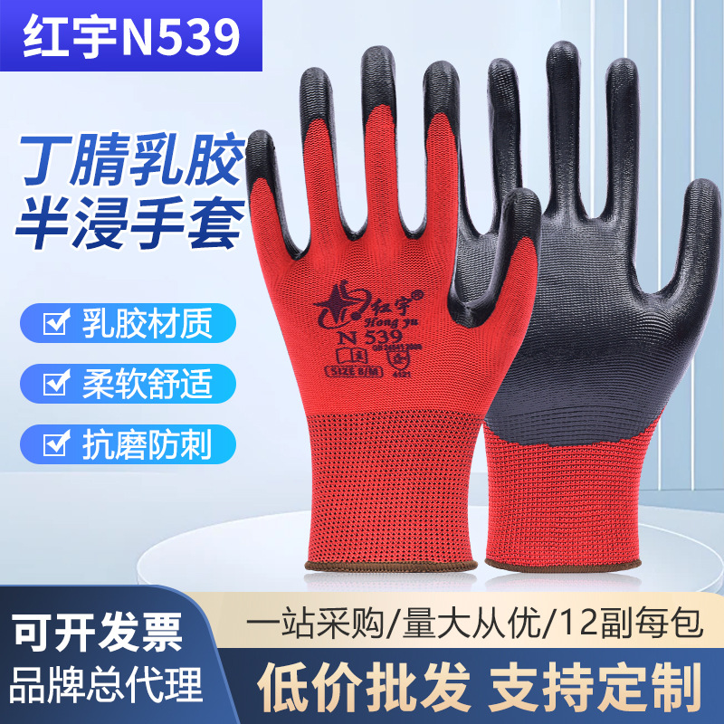 星宇紅宇少なくとも39丁晴浸ゴム労働保護手袋機械耐摩耗性耐油防護手袋卸売り耐摩耗手袋