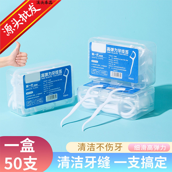 デンタルフロスボックス 50 高弾性使い捨てデンタルフロススティック卸売口腔クリーニングフロス個別包装つまようじフロス
