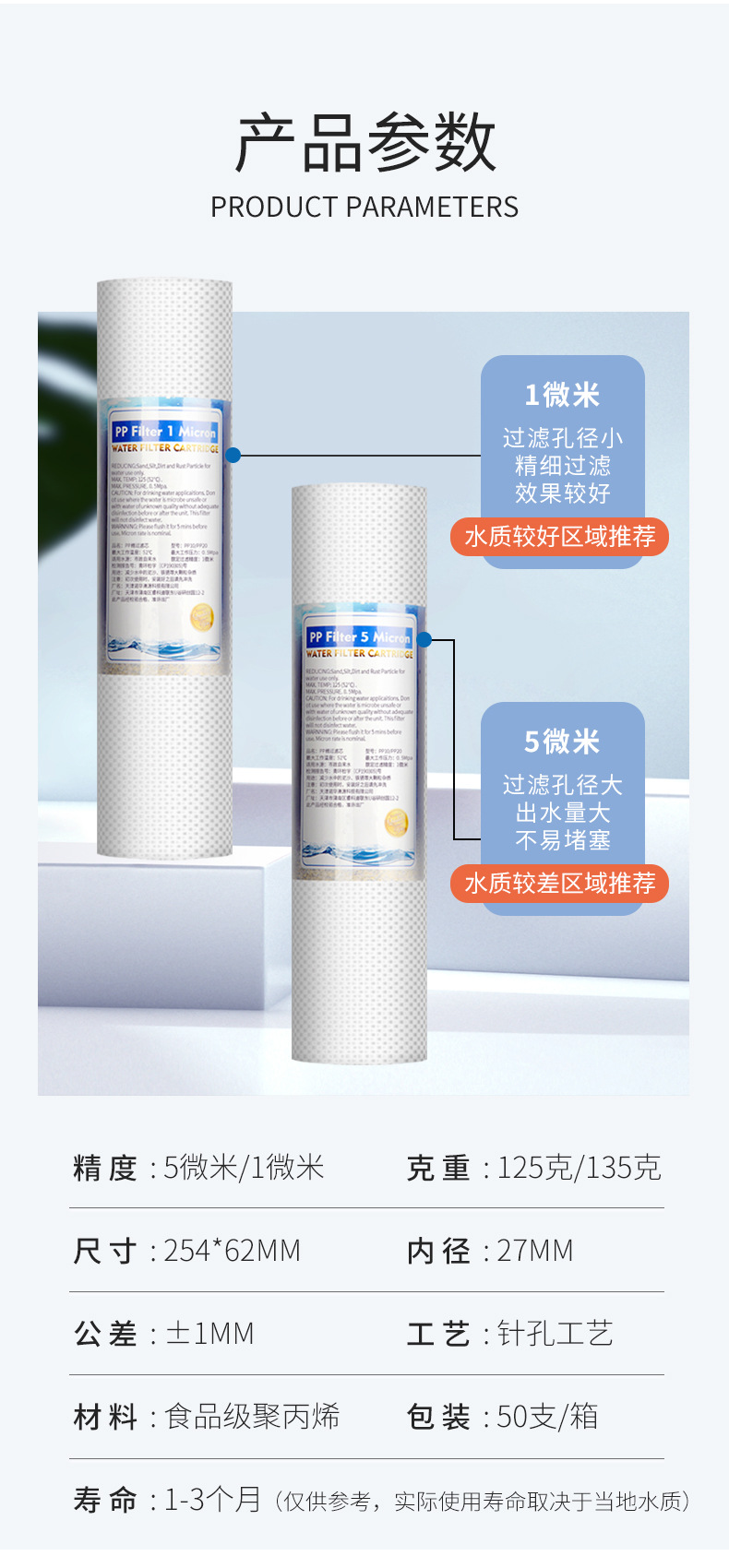 10インチ5ミクロンPP綿フィルターエレメント 家庭用浄水器用 沈殿物ろ過 5μmPPF 原産地メーカー卸売