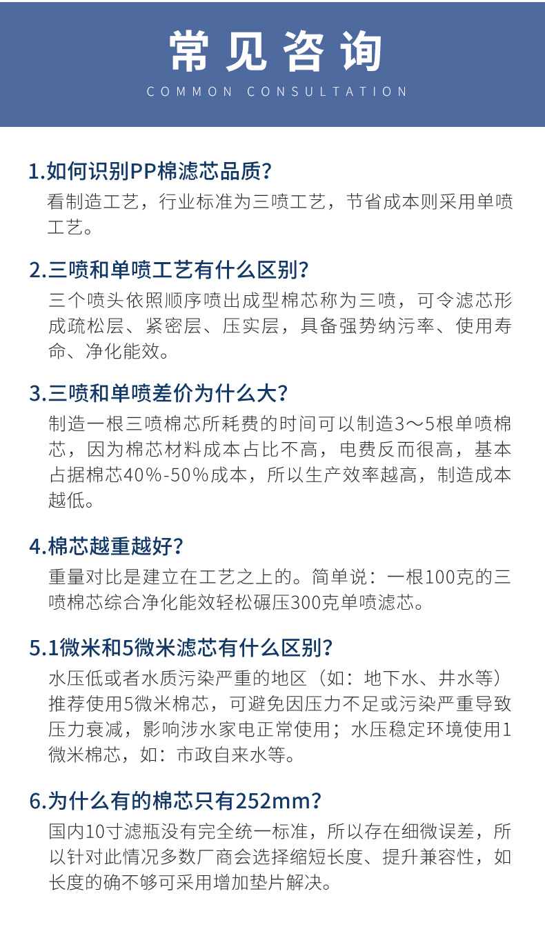 家庭用浄水器シャワー洗濯機トイレフィルターエレメント小型フロントフィルター交換可能なコア PP 綿クロスボーダーホットモデル